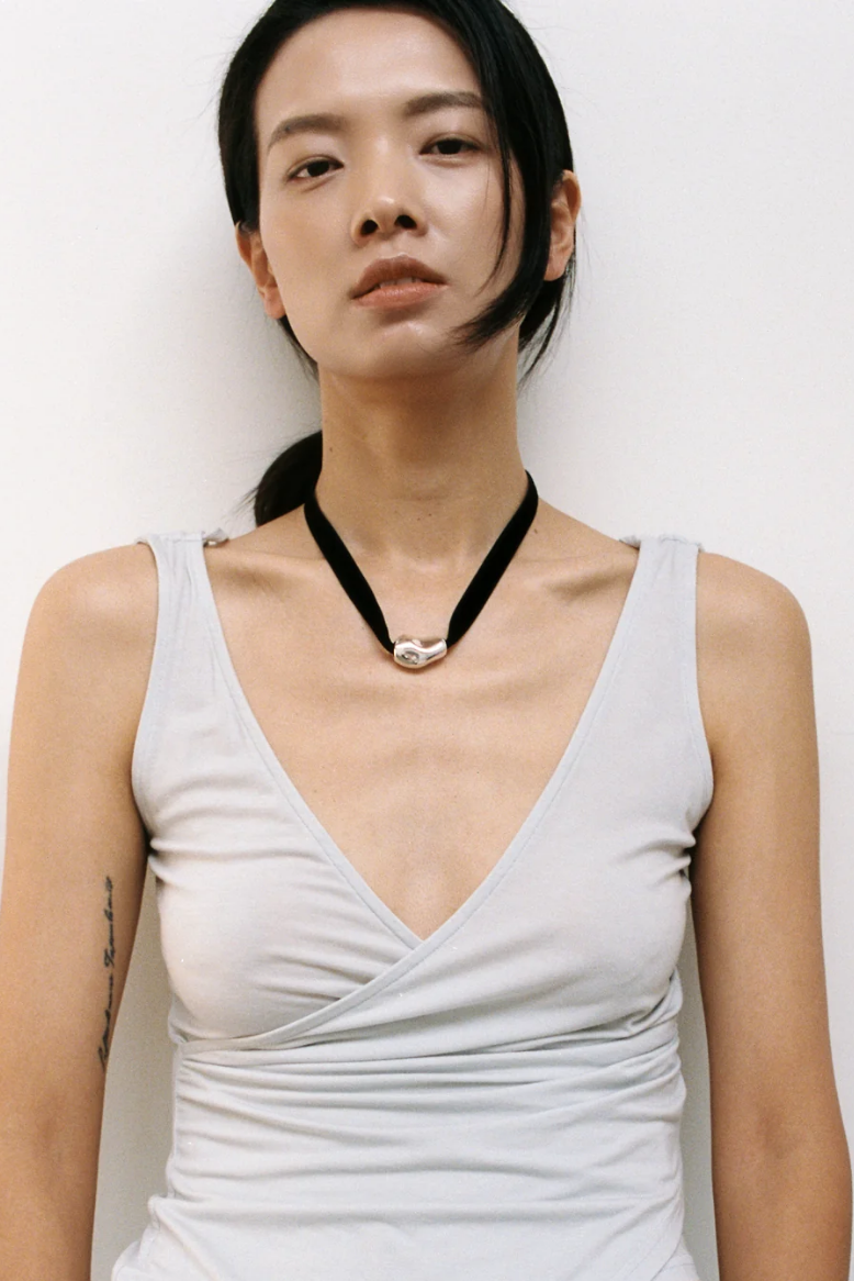 Wolf Circus | Bean Pendant on Velvet Cord | Silver