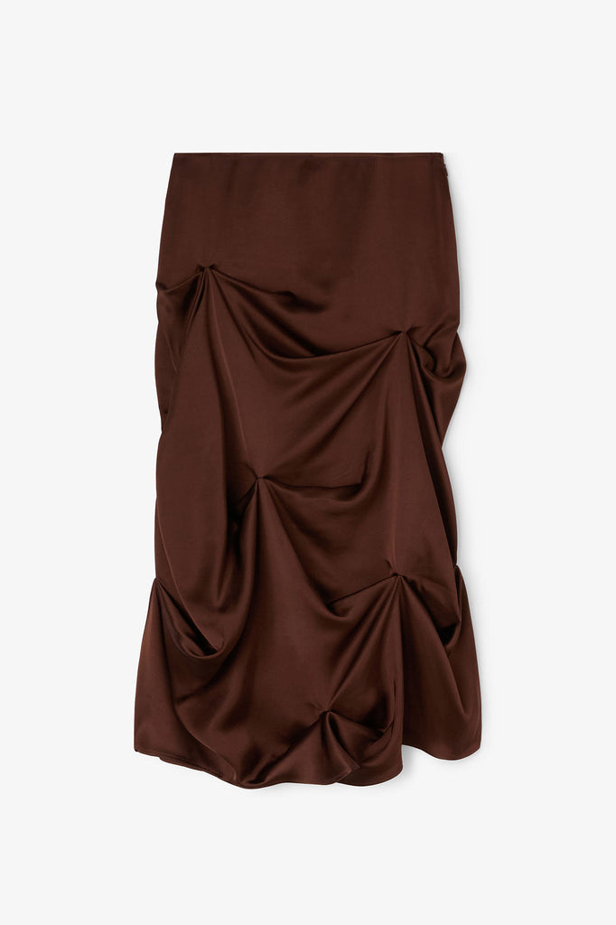 Ganni | Double Viscose Satin Tuck Detail Long Skirt | Chicory Coffee