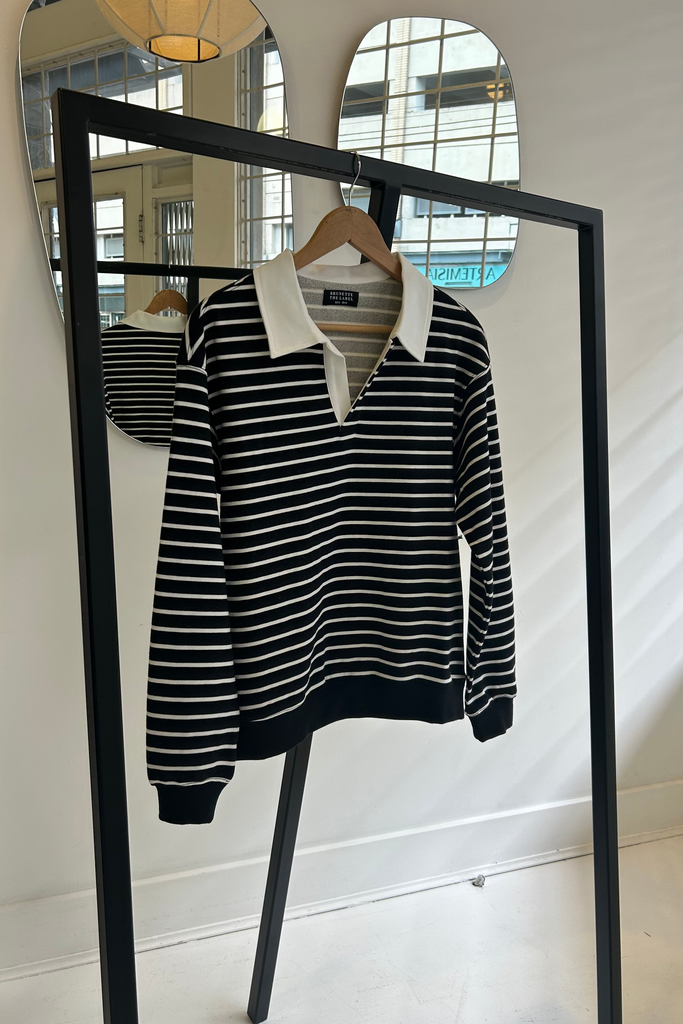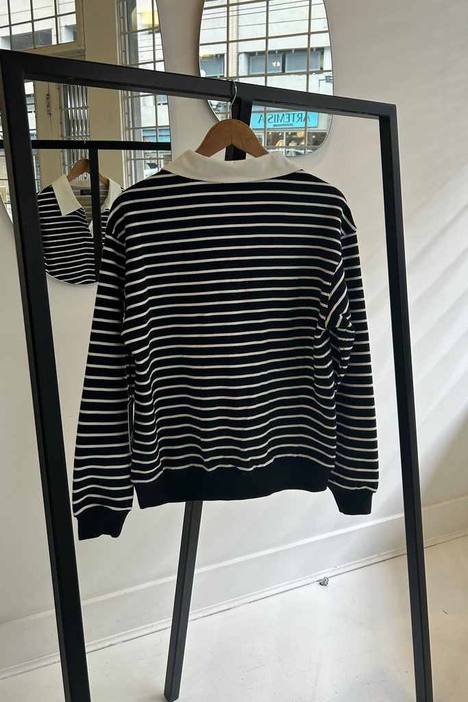 Brunette | Striped Polo Sweater | Black w/ White Stripes