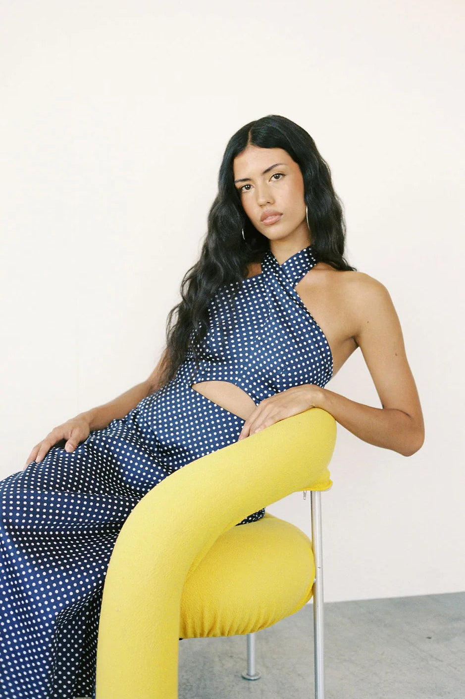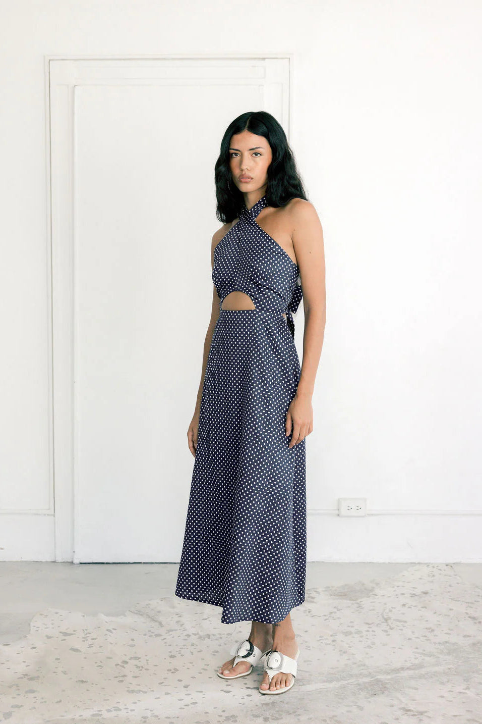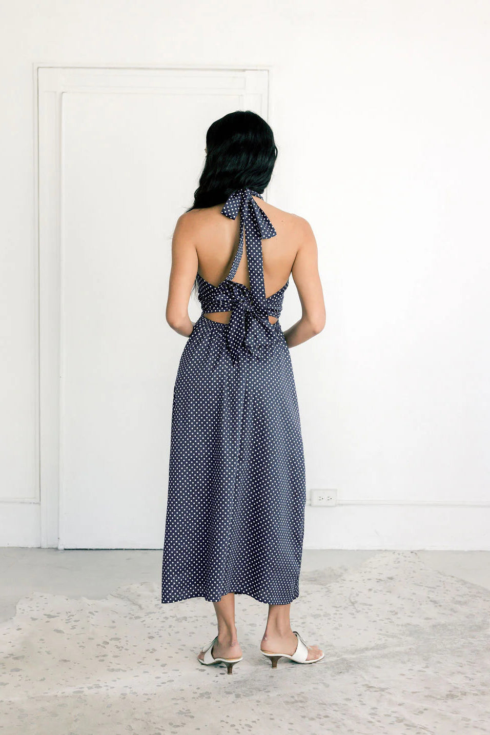 A Bronze Age | Naya Dress | Navy Polkadot