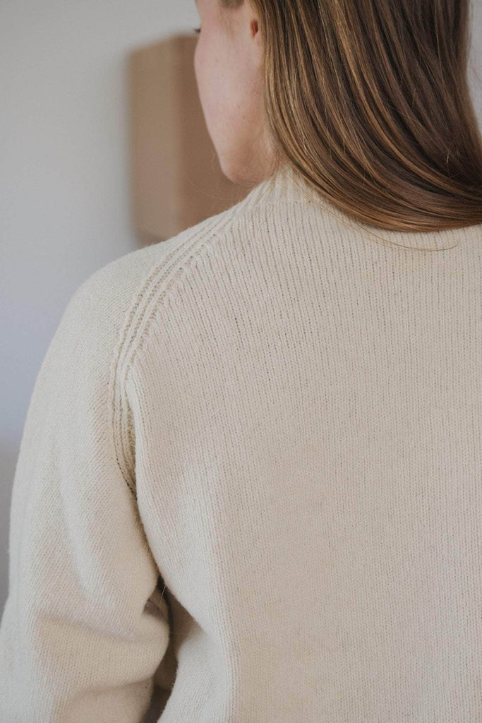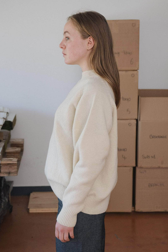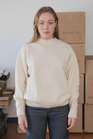 An Arles Merino wool sweater crewneck sweater from Baserange. Features a raglan sleeve and finished with a ribbed collar, cuffs, and hem.
