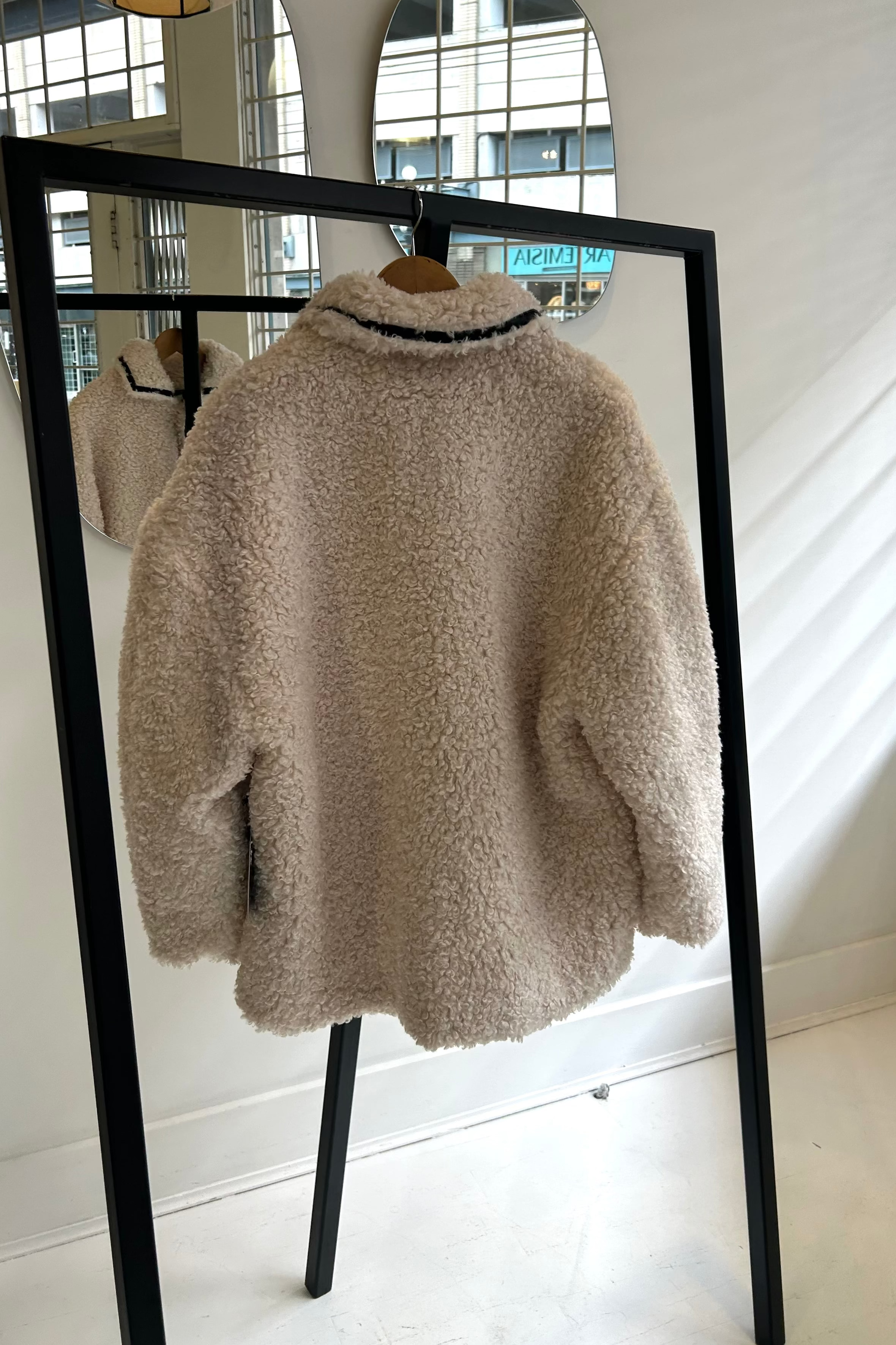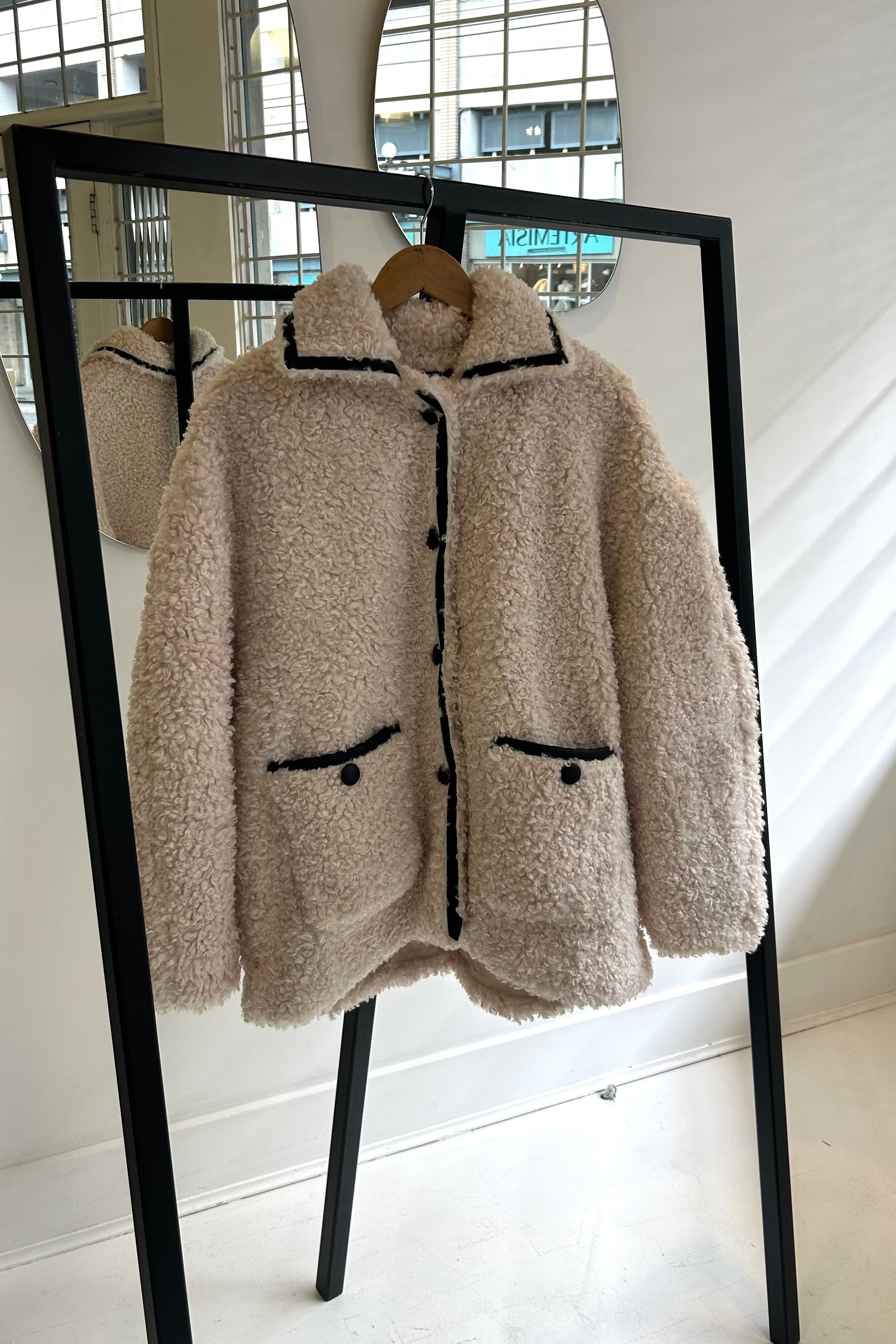 Brunette | Sherpa Jacket w/ Leather Trim | Cream w/ Black