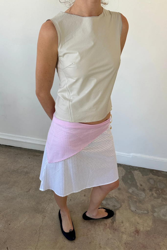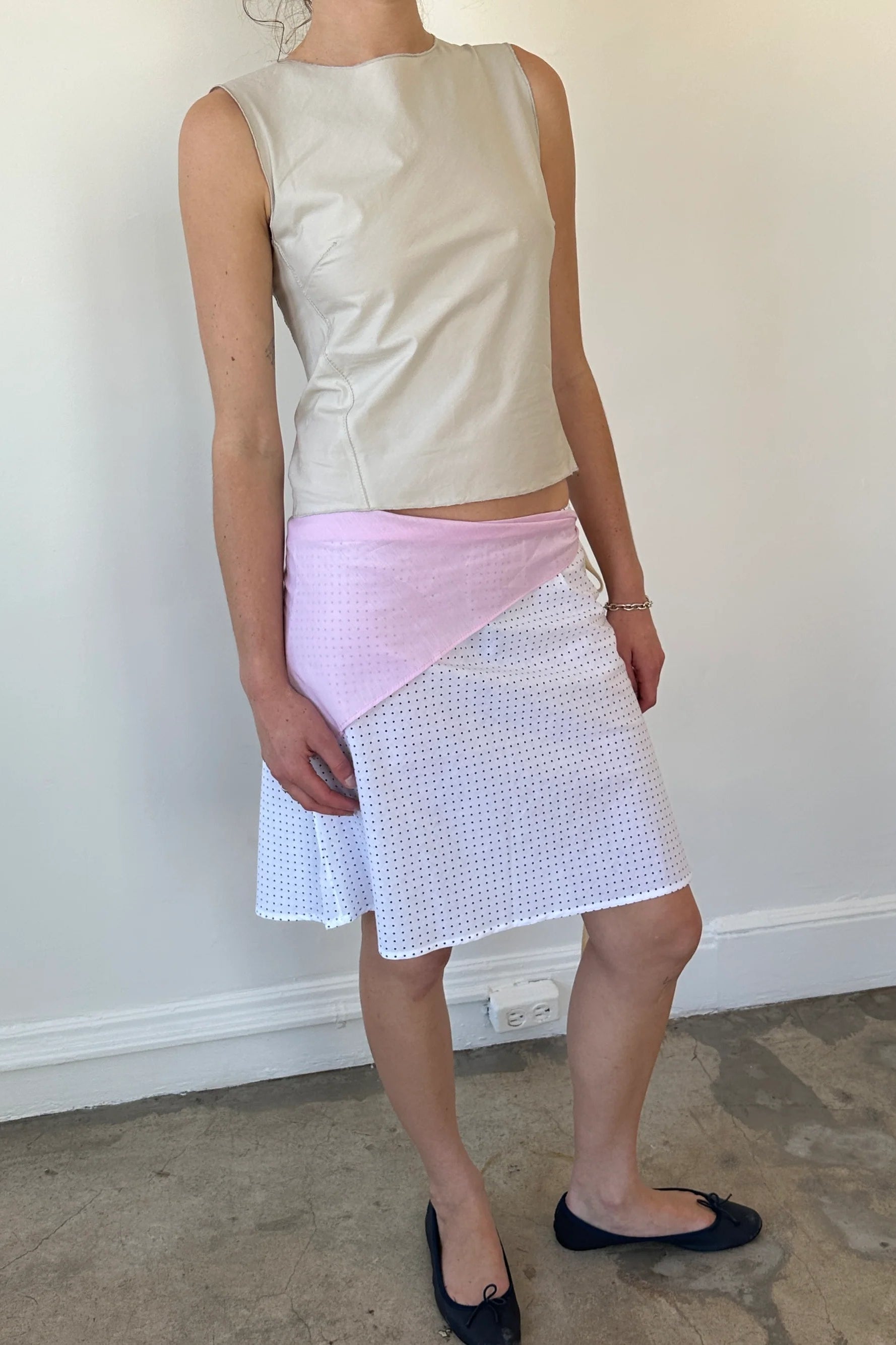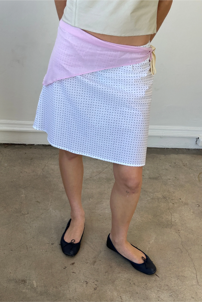 Charlie Beads | 90s Bias Mini Skirt | White Black Dot