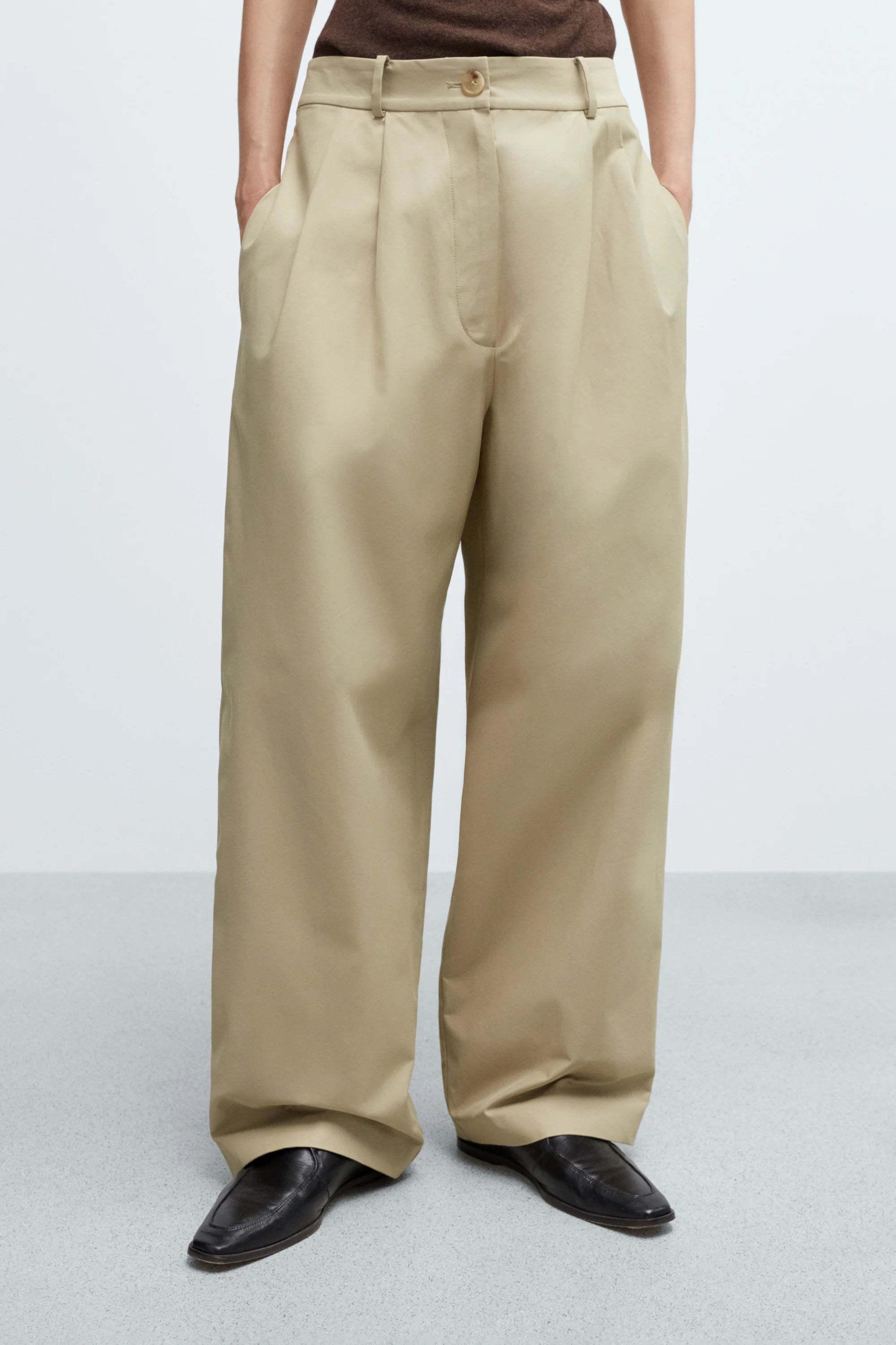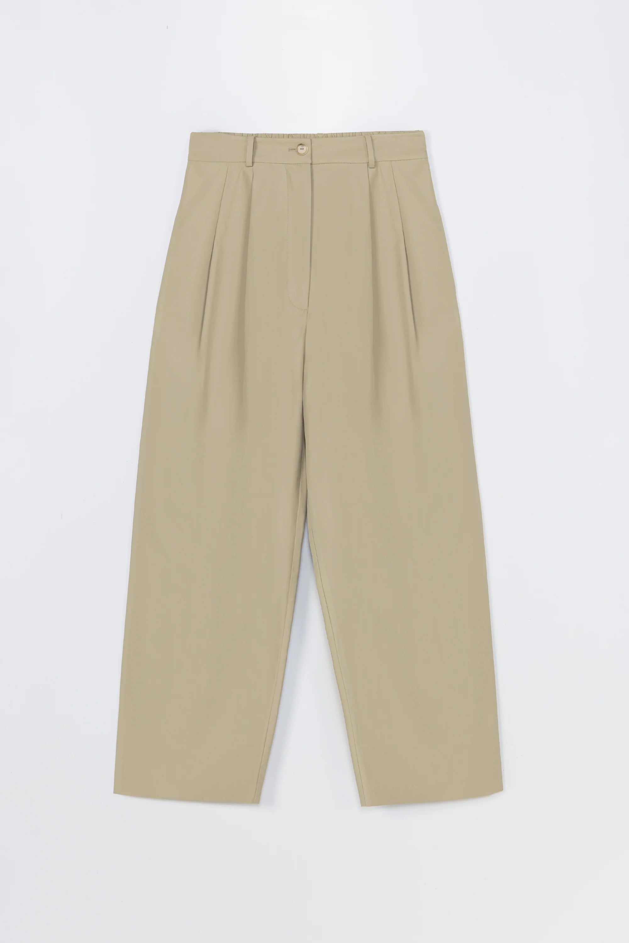 These tailored pants from Cordera are crafted from a structured technical fabric, offering a modern take on a timeless silhouette. Featuring a loose, masculine fit with a mid-rise and double front pleats for added structure. Details include jetted side pockets, back welt pockets, an elasticated waistband at the back, zip and button closure, and belt loops. They combine clean lines with a sharp, architectural feel.
