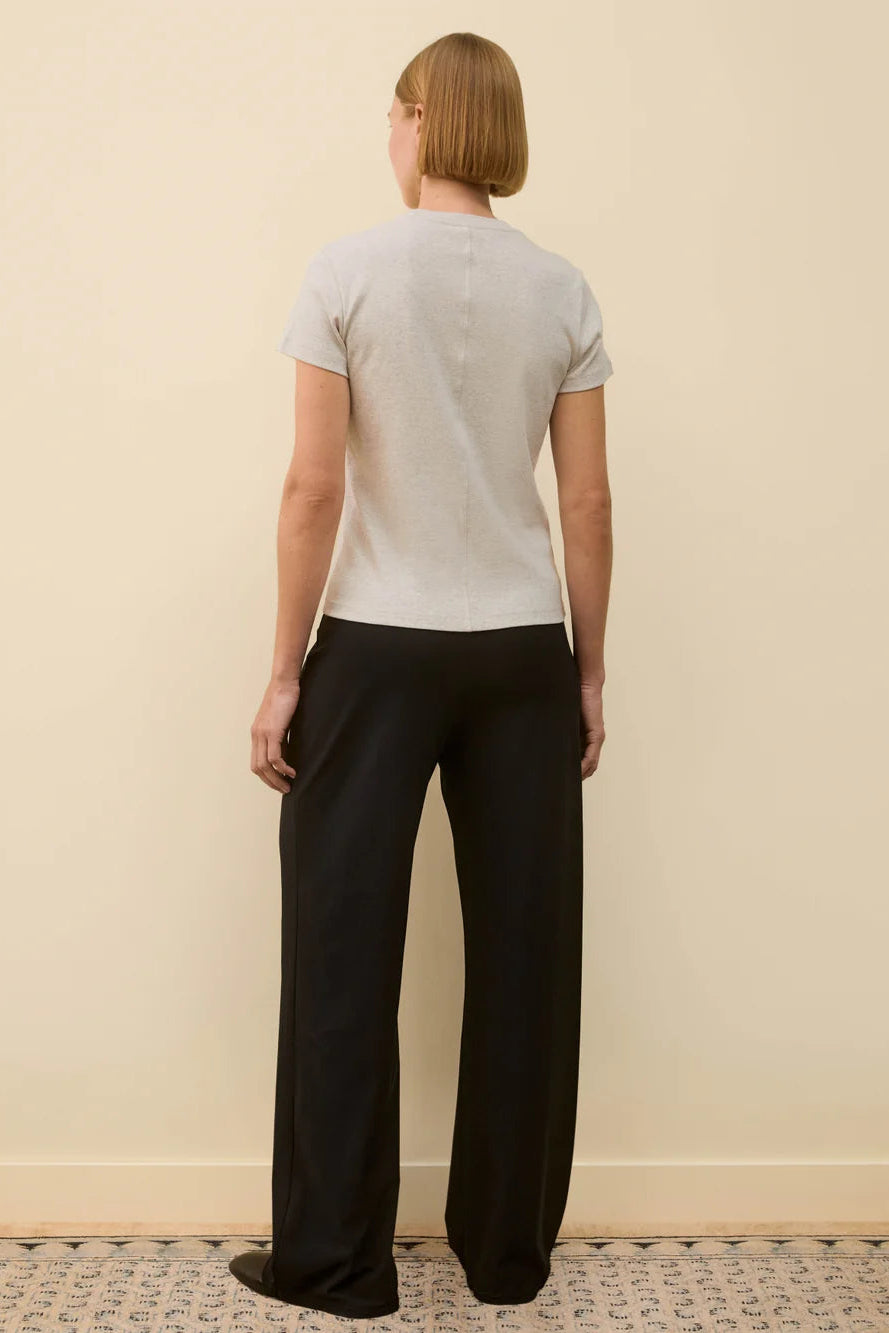 A relaxed fit short-sleeved tee with a double stitched cut off seam on the back. Made from 100% organic cotton 1 x 1 rib.