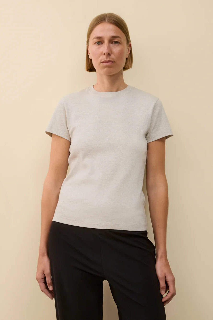 Fit | Fits true to size, designed to be a slightly relaxed fit. Take your usual size. Model is 178cm and wears the Monica Tee in Heather Grey in a Medium.