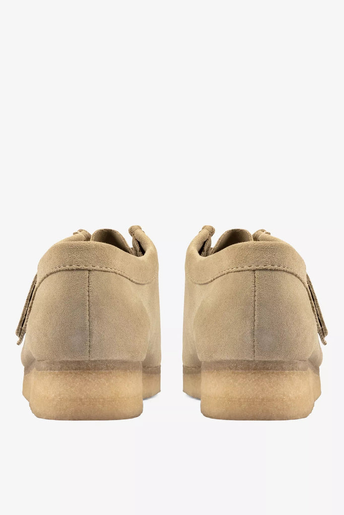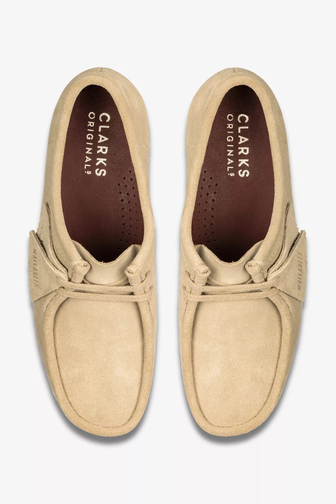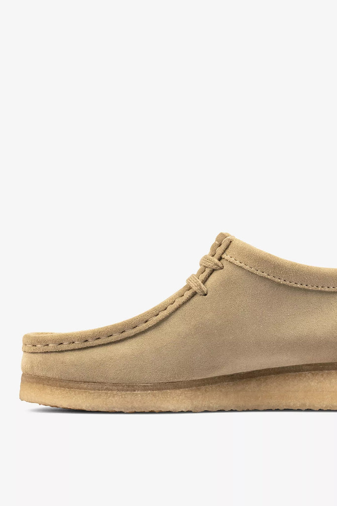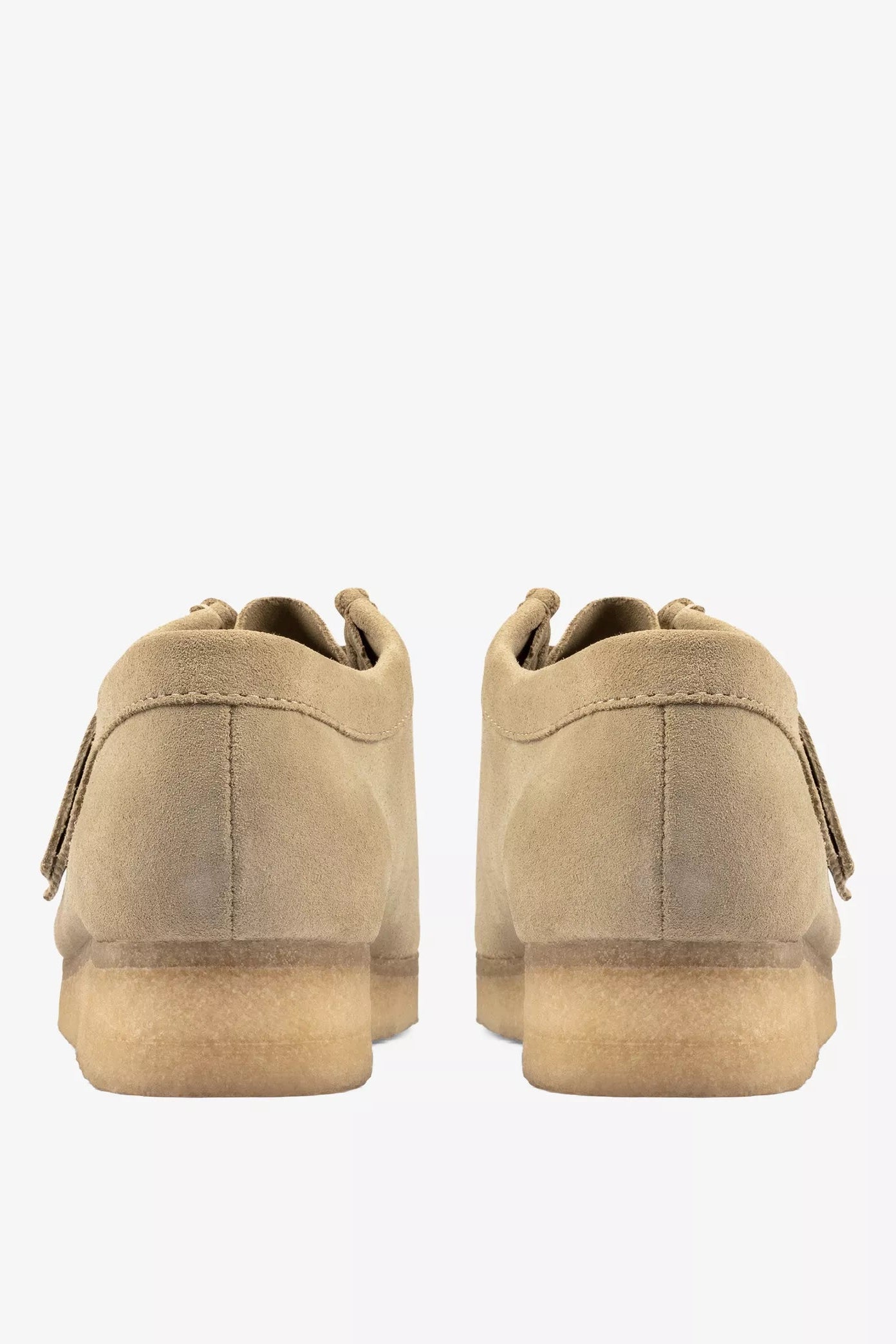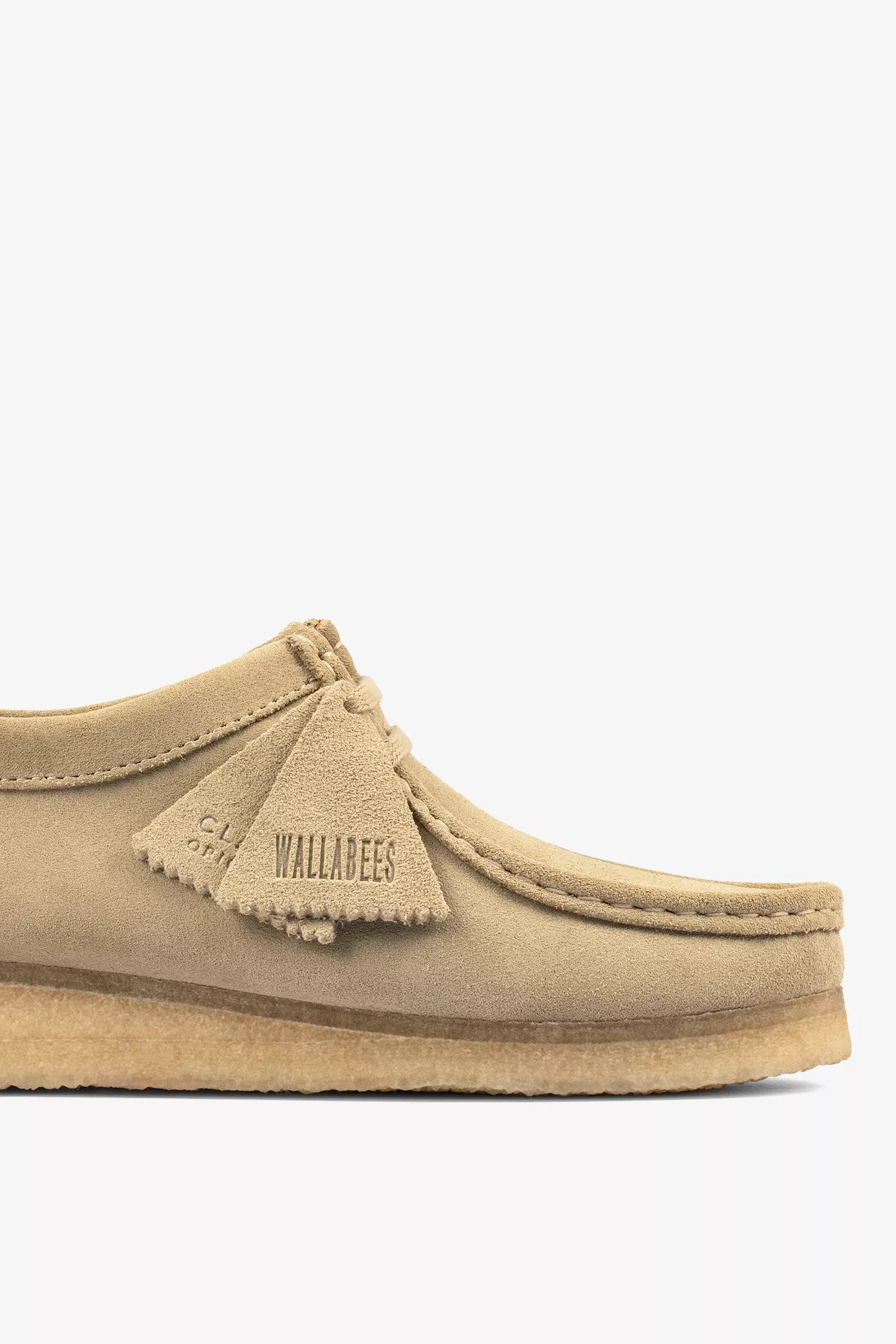 The legendary Wallabee from Clarks in classic maple suede. Butter-soft suede uppers offer a crafted look and feel, while inimitable natural crepe soles provide comfort. Waxy laces and tonal fobs enhance its authentic, laidback aesthetic.