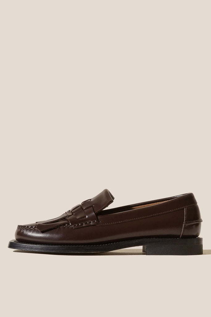 Slip-on loafer from Hereu with interwoven fringe detailing, crafted in structured calf leather.