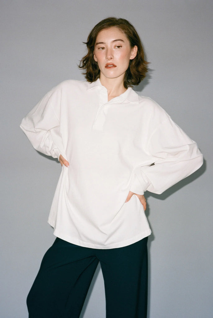 A modern take on the classic men's rugby shirt from Gil Rodriguez, featuring a placket and cuffed sleeves. Crafted from a heavyweight 100% combed cotton jersey, locally knit for a distinct, luxurious hand feel.
