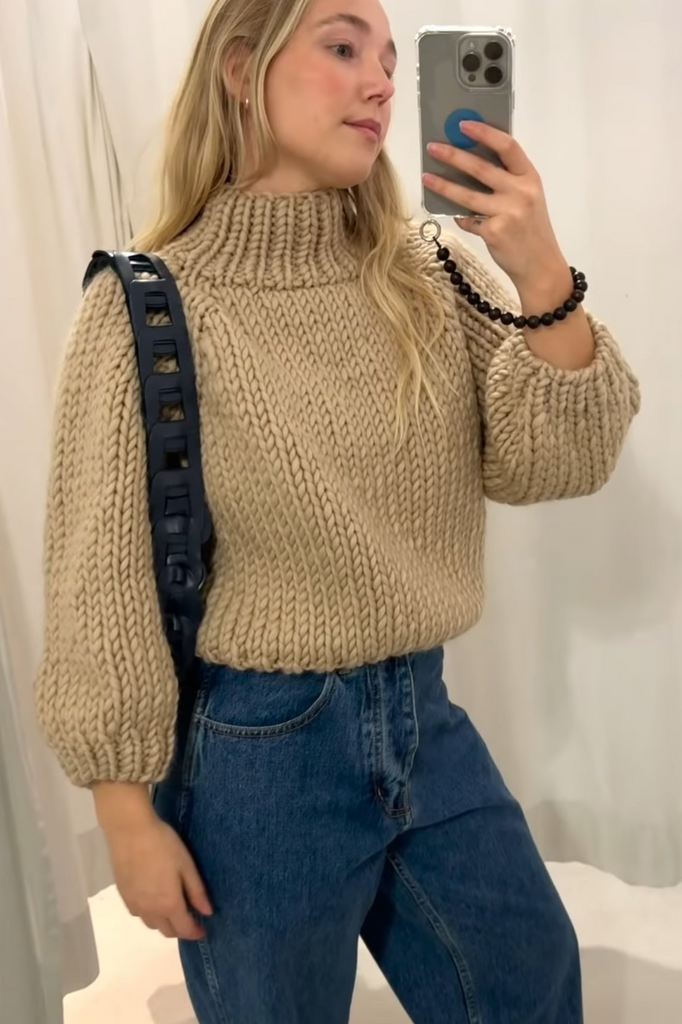 Made from beautiful, lofty super bulky wool sourced from Peru and Uruguay, each sweater is handcrafted by Tara-Lynn in Ontario.