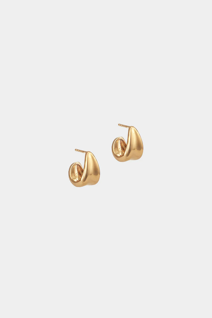 A pair of chunky gold hoops with a soft, curled edge. A bolder hoop, perfect for everyday wear or for a night out.
