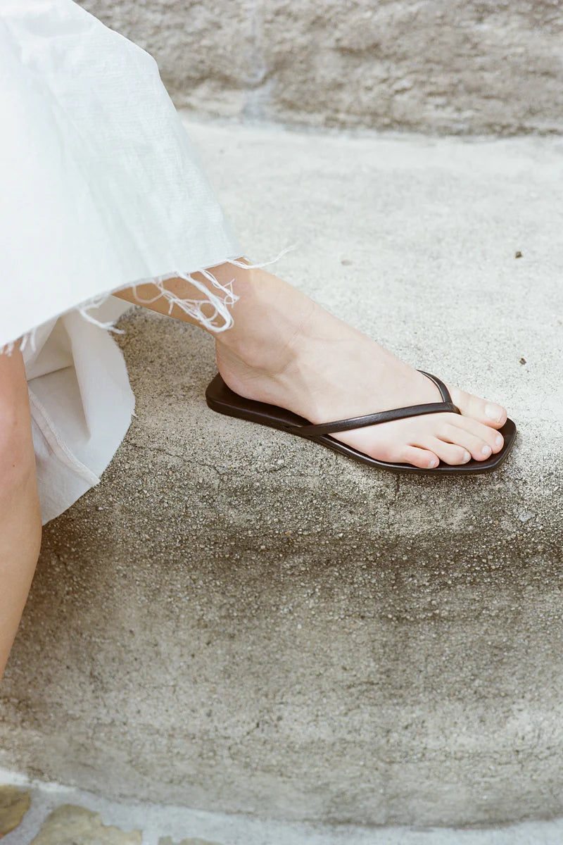 The Salina is a minimal thong sandal from LOQ, featuring a padded footbed and thin straps. Squared off footbed for comfort and a contemporary look.