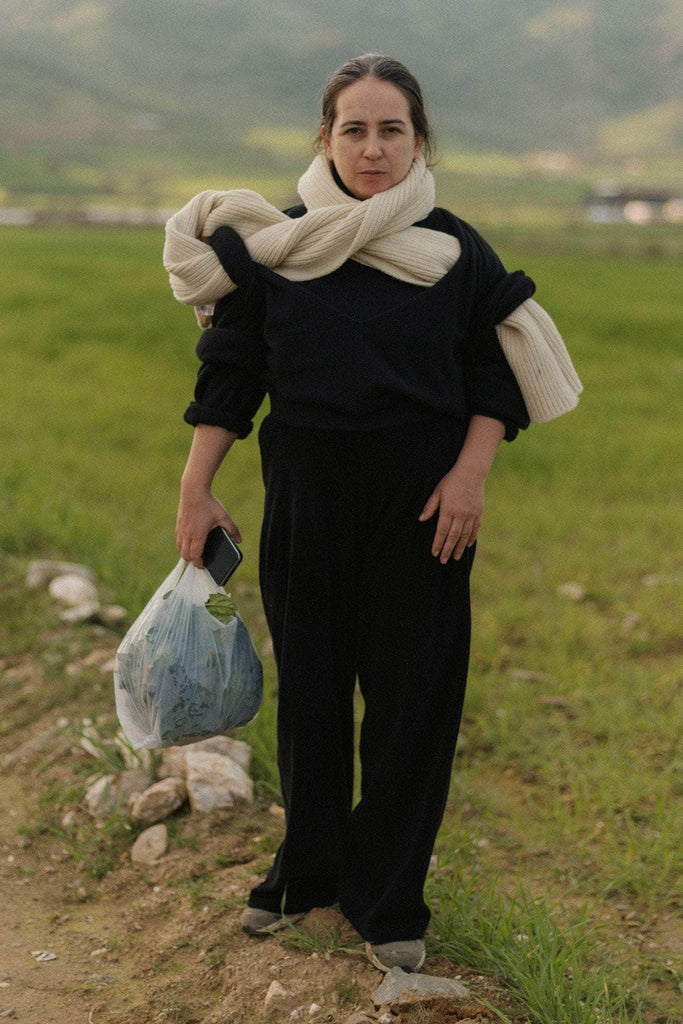 An Arles Merino wool ribbed knit scarf from Baserange.