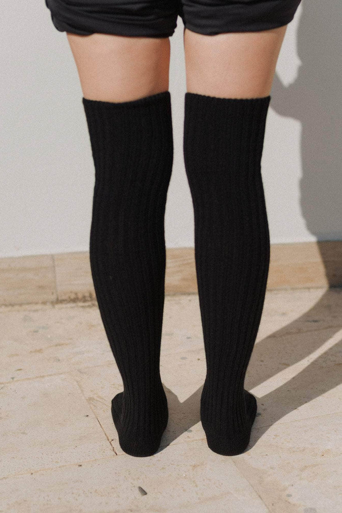 Recycled cashmere rib knit knee-high socks from Baserange.