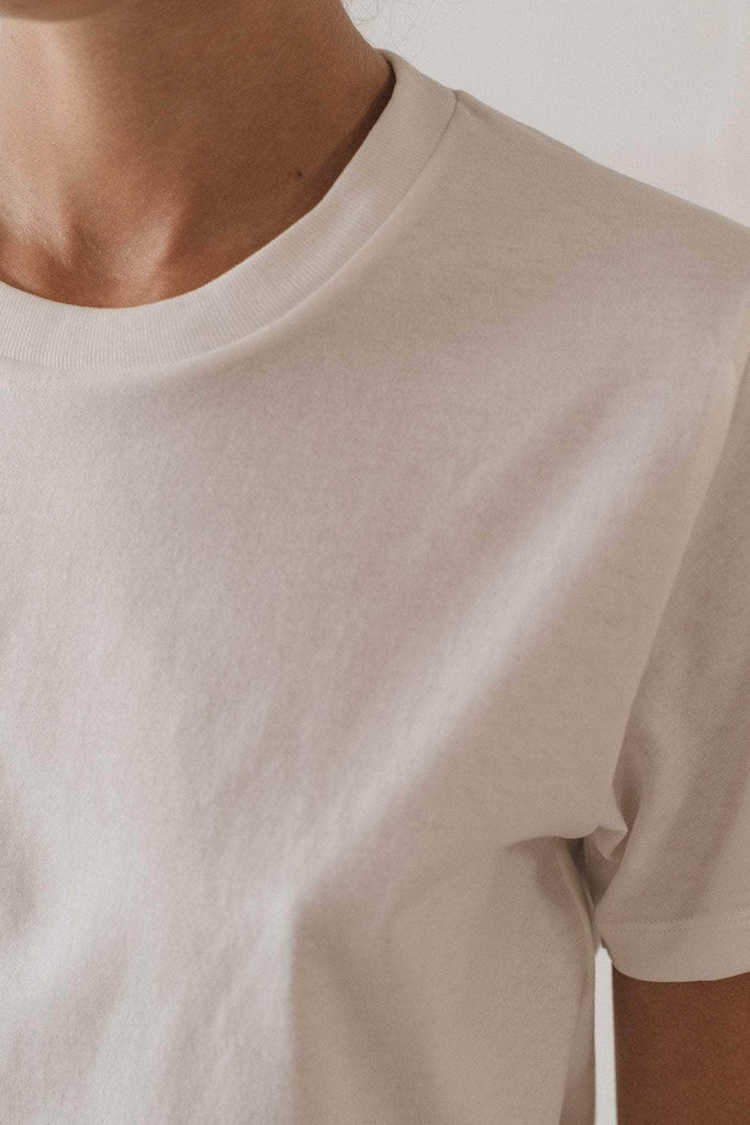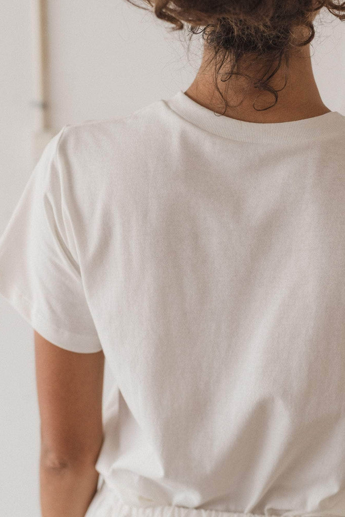 A recycled cotton crewneck tee from Baserange. Undyed fabric.