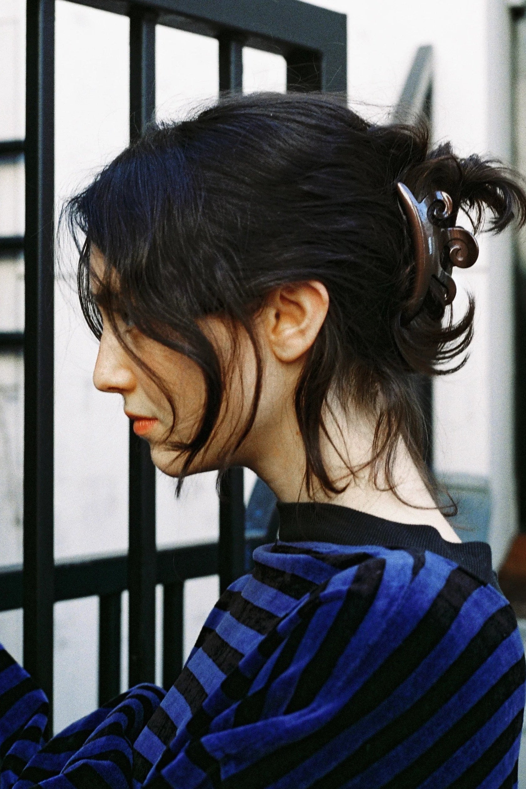 Sculptural and functional, the River claw clip from Merrma is crafted in France from molded cellulose acetate. Its glossy finish gives the surface a soft, satin-like sheen, while a patented covered-spring mechanism ensures a secure and seamless grip.