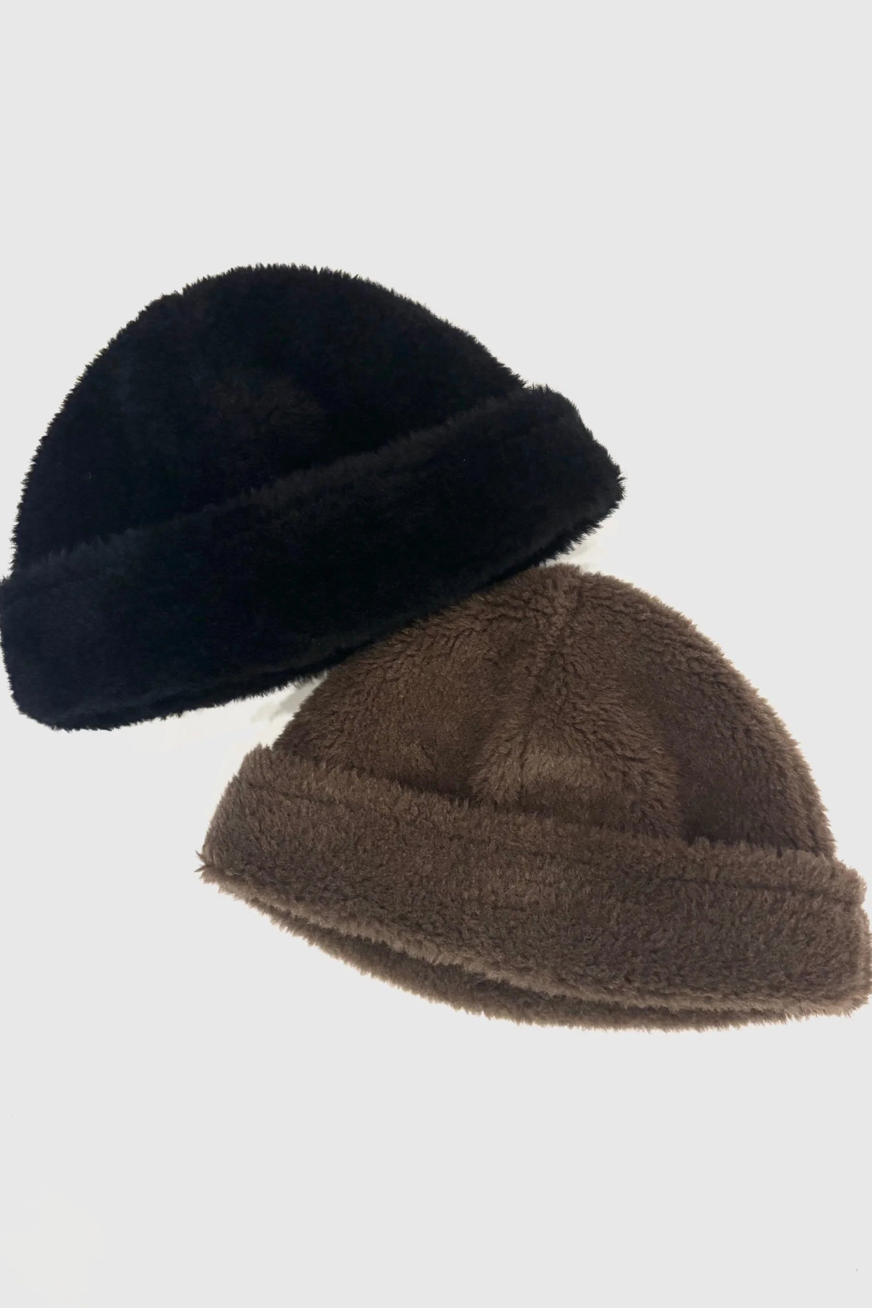 A faux fur toque from Oud with sherpa fleece lining. Keeping your head warm while keeping your hair in place!