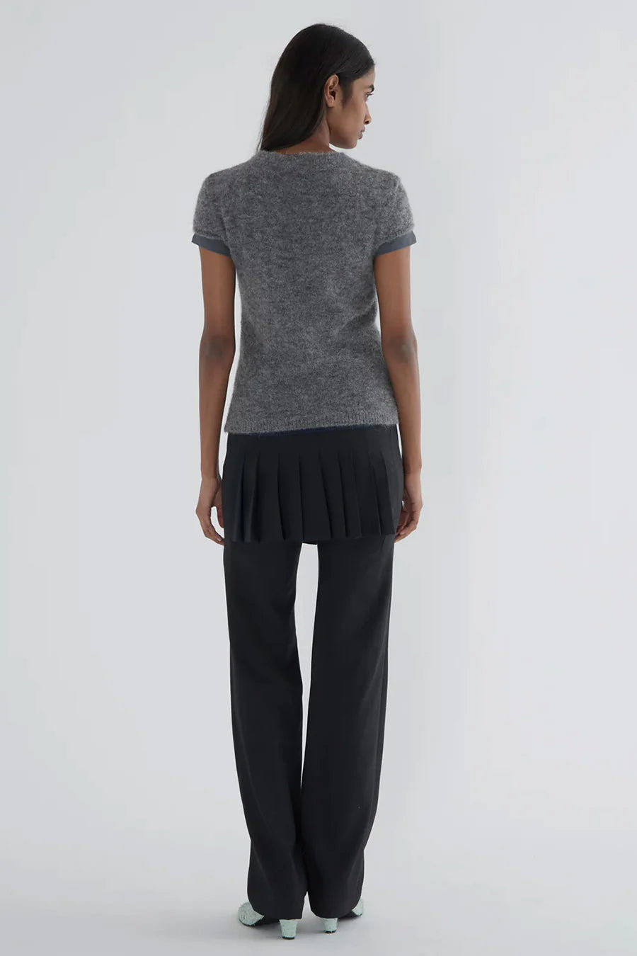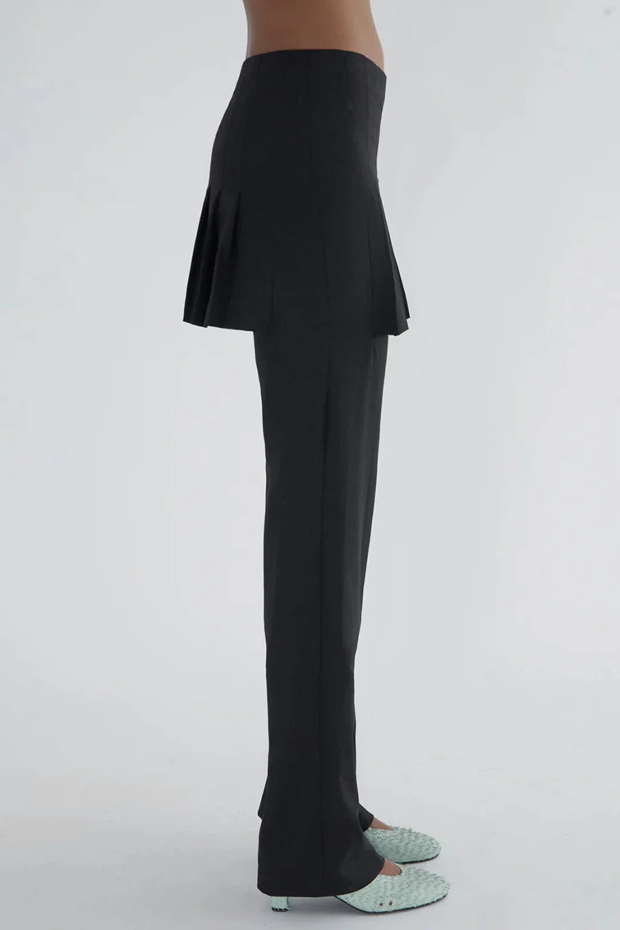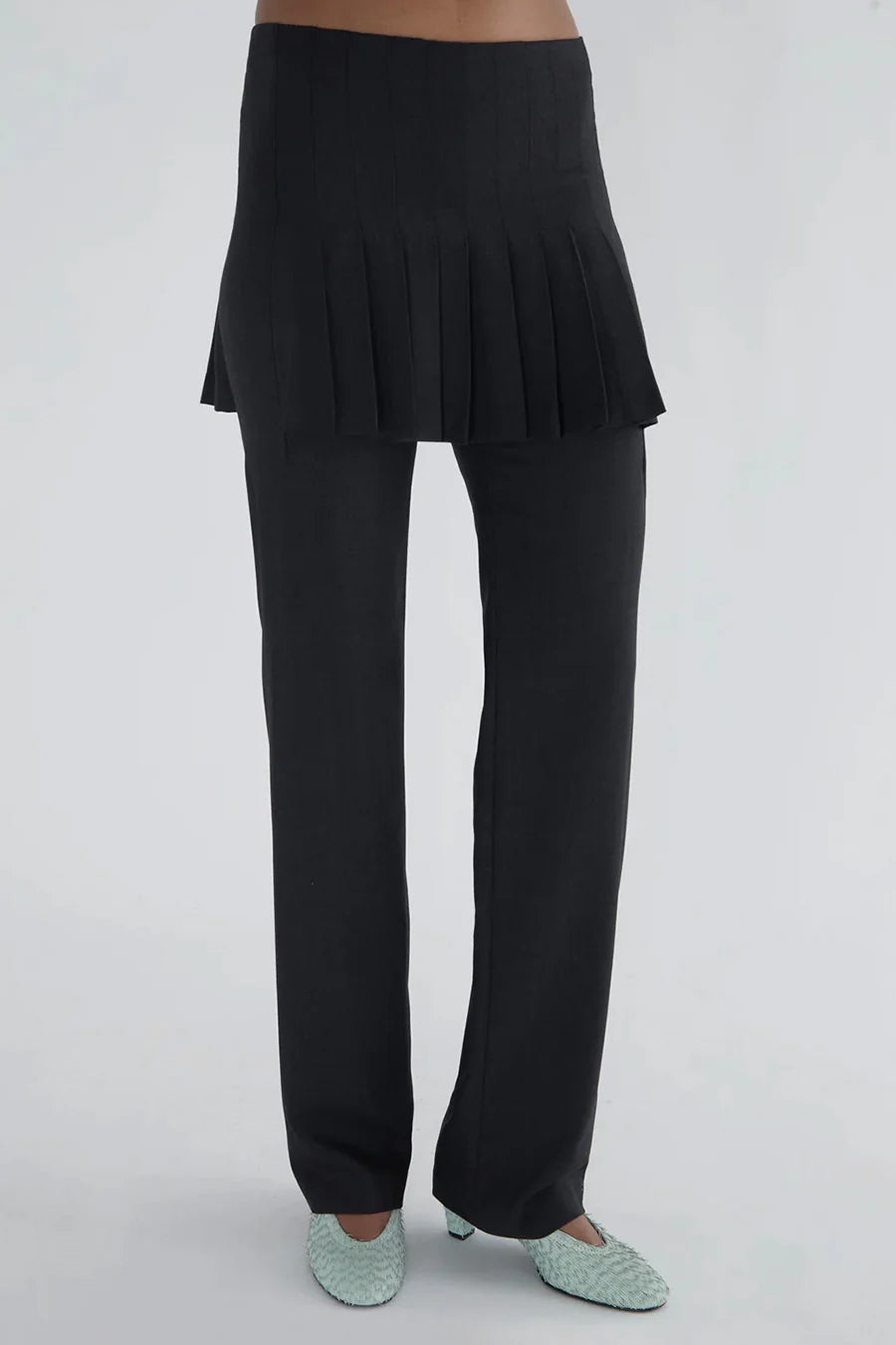The Andrale Trousers from Paloma Wool are made from a recycled polyester, mulesing-free wool, and elastane blend. Features a straight cut and a pleated overskirt at the front and back, leaving the sides exposed. Crafted from a fluid tailoring fabric, they combine structure and originality for an elegant and contemporary silhouette.