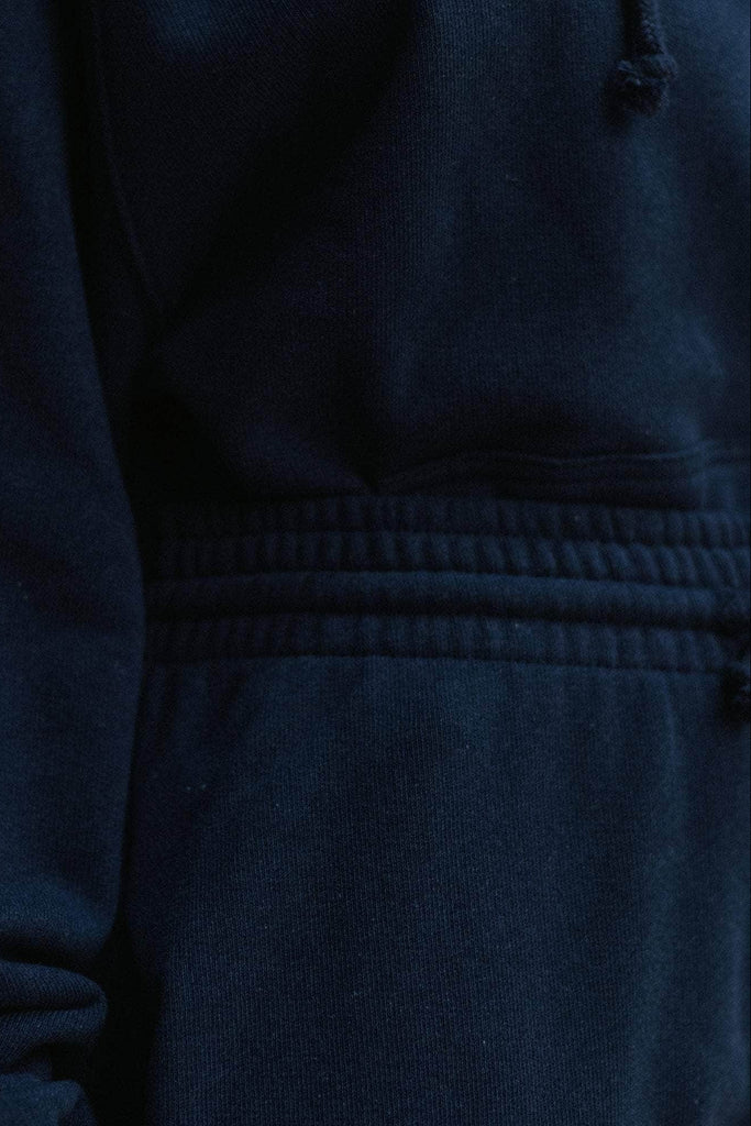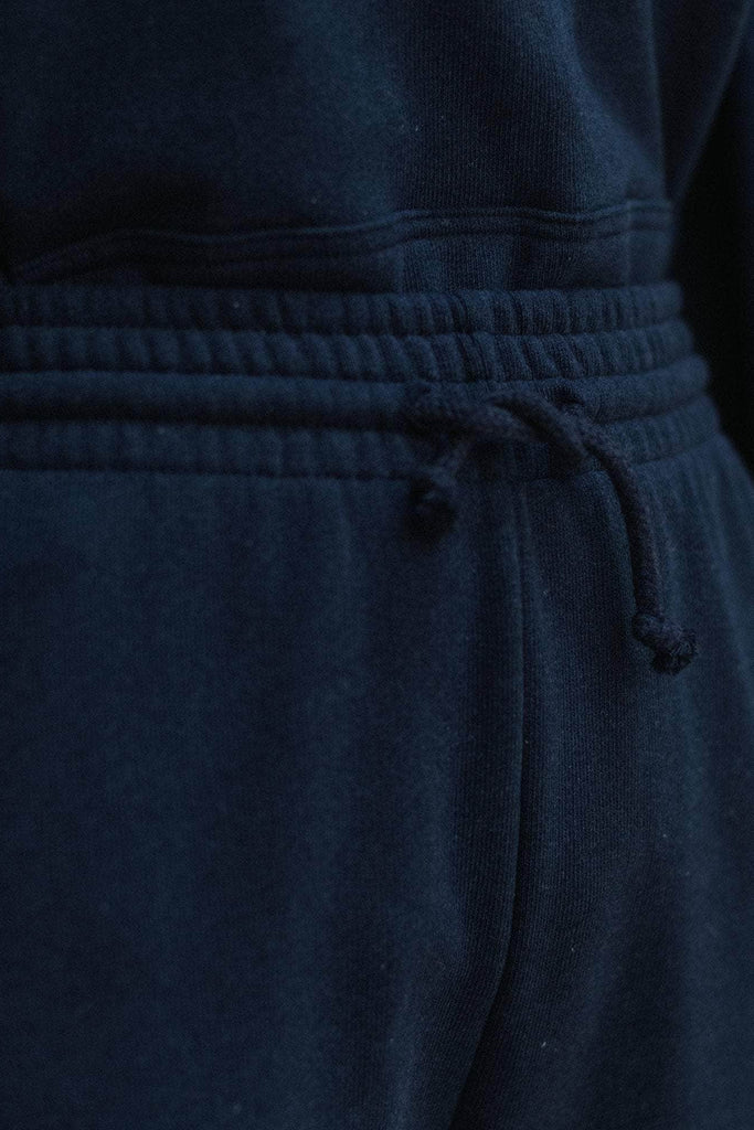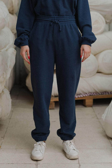 A pair of recycled cotton fleece sweatpants from Baserange. Features a classic elastic waistband with drawstring, and wide fit through the hips and legs. Elasticated hem at the ankle.