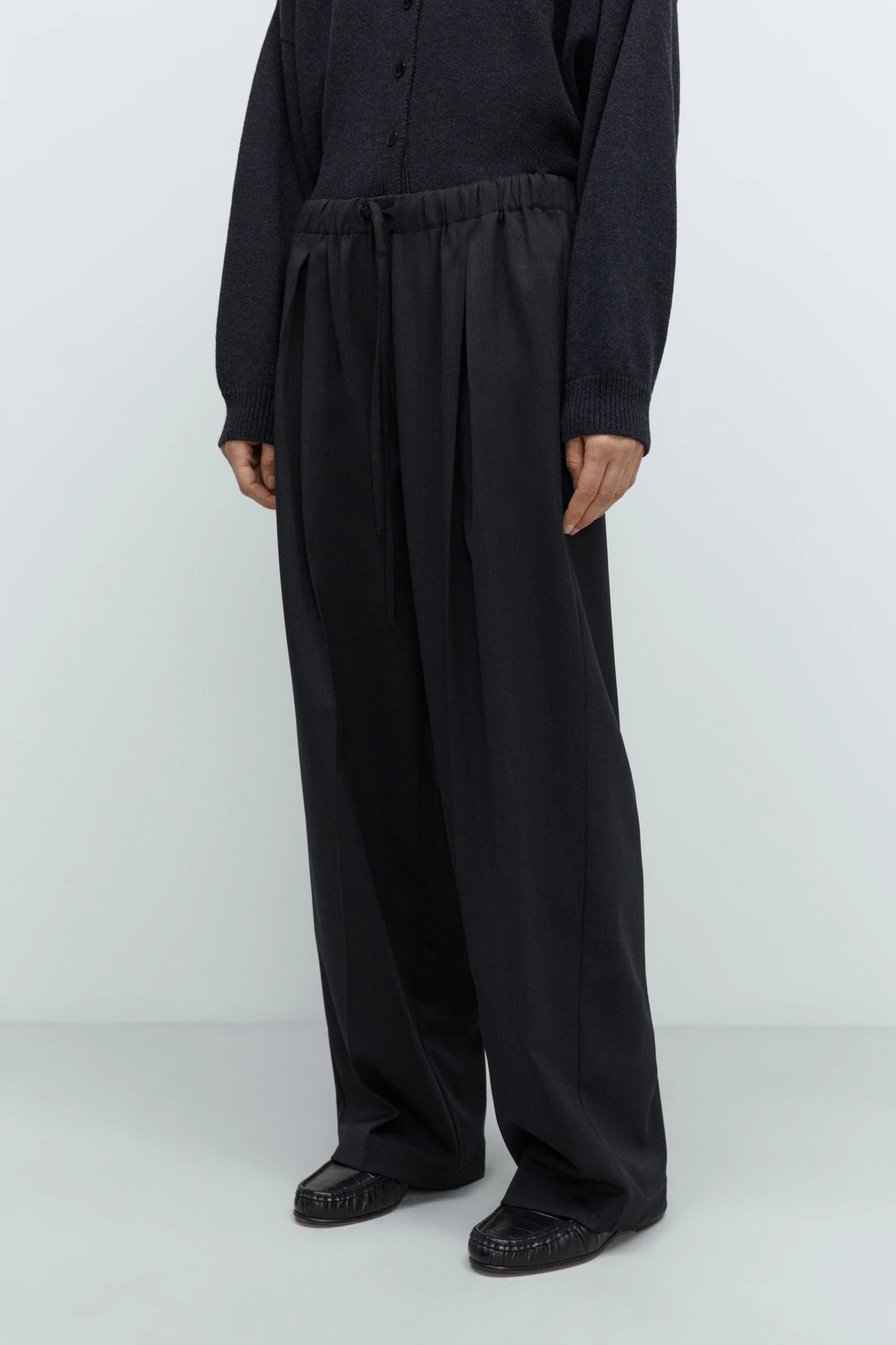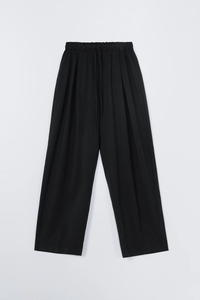 Relaxed-fit pants with an elastic waistband and adjustable drawstring. Designed for maximum comfort with stylish details. Made from lightweight fabric, they’re perfect for year-round wear. Detailed with sharp front and back pleats along the legs, as well as faux back pockets.