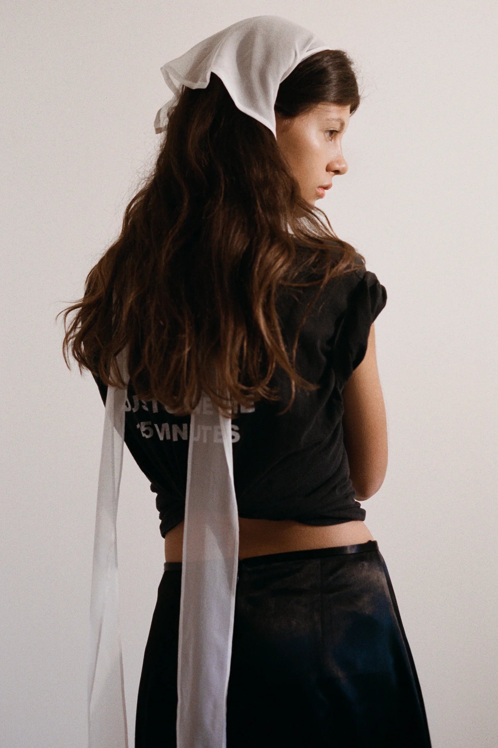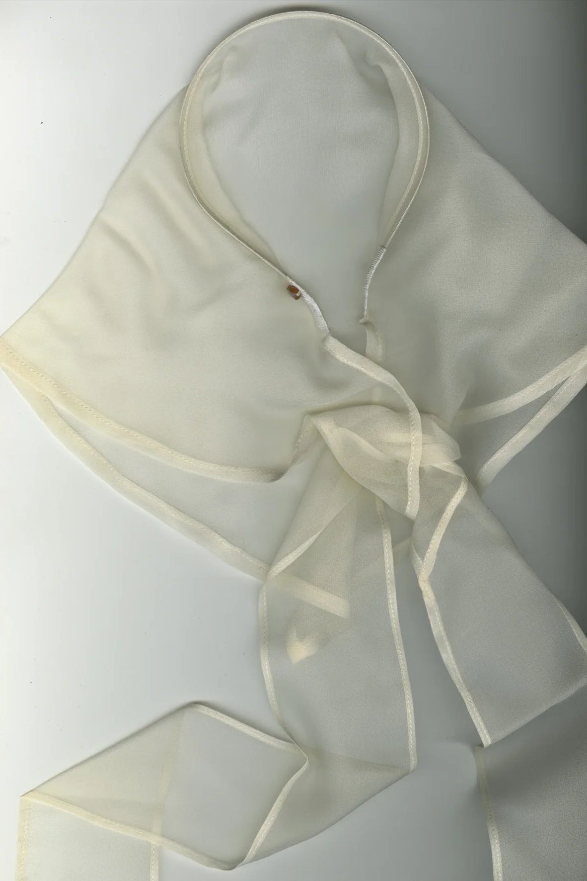 This sheer pearl white bandana from Merrma is crafted from 100% sheer silk georgette, offering an ethereal touch of softness and movement.