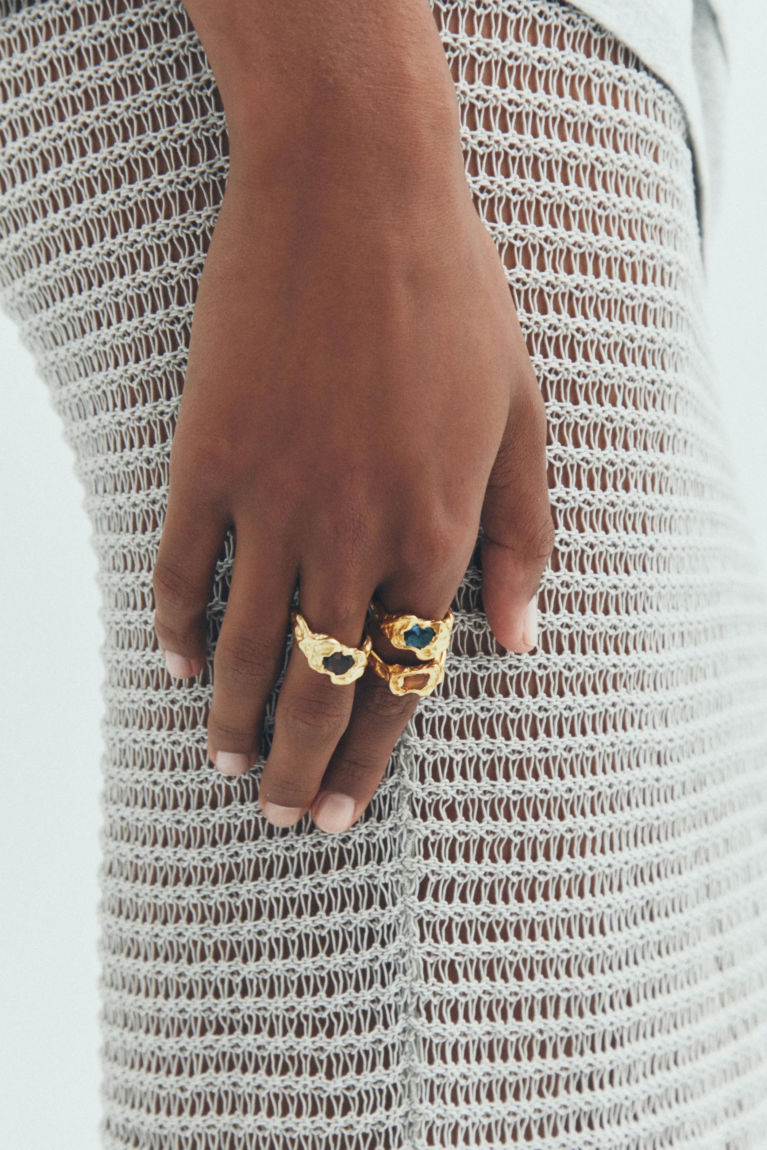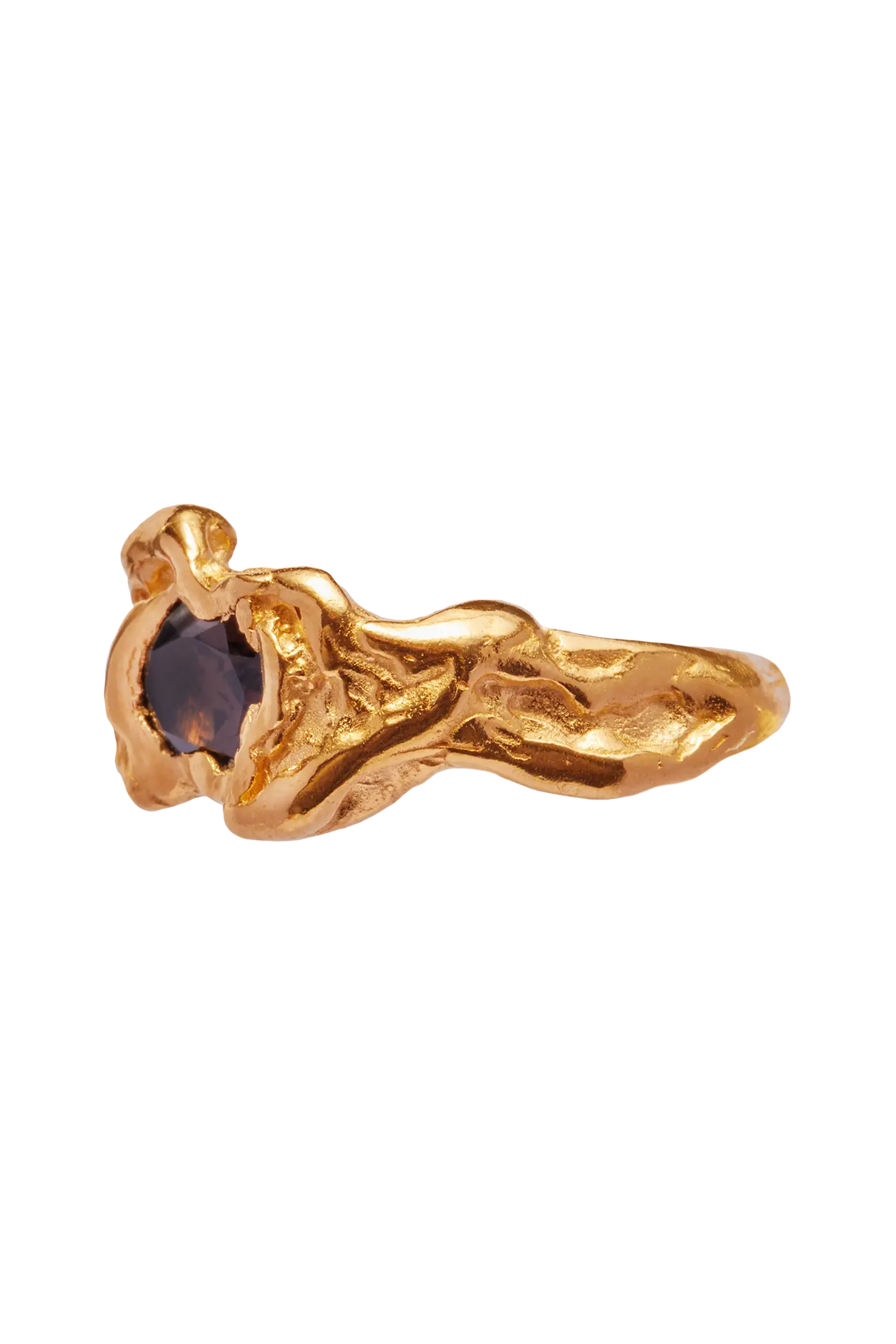 The Ola Blue ring from Simuero. Handmade gold plated recycled 925 sterling silver ring with a smoky quartz natural stone.