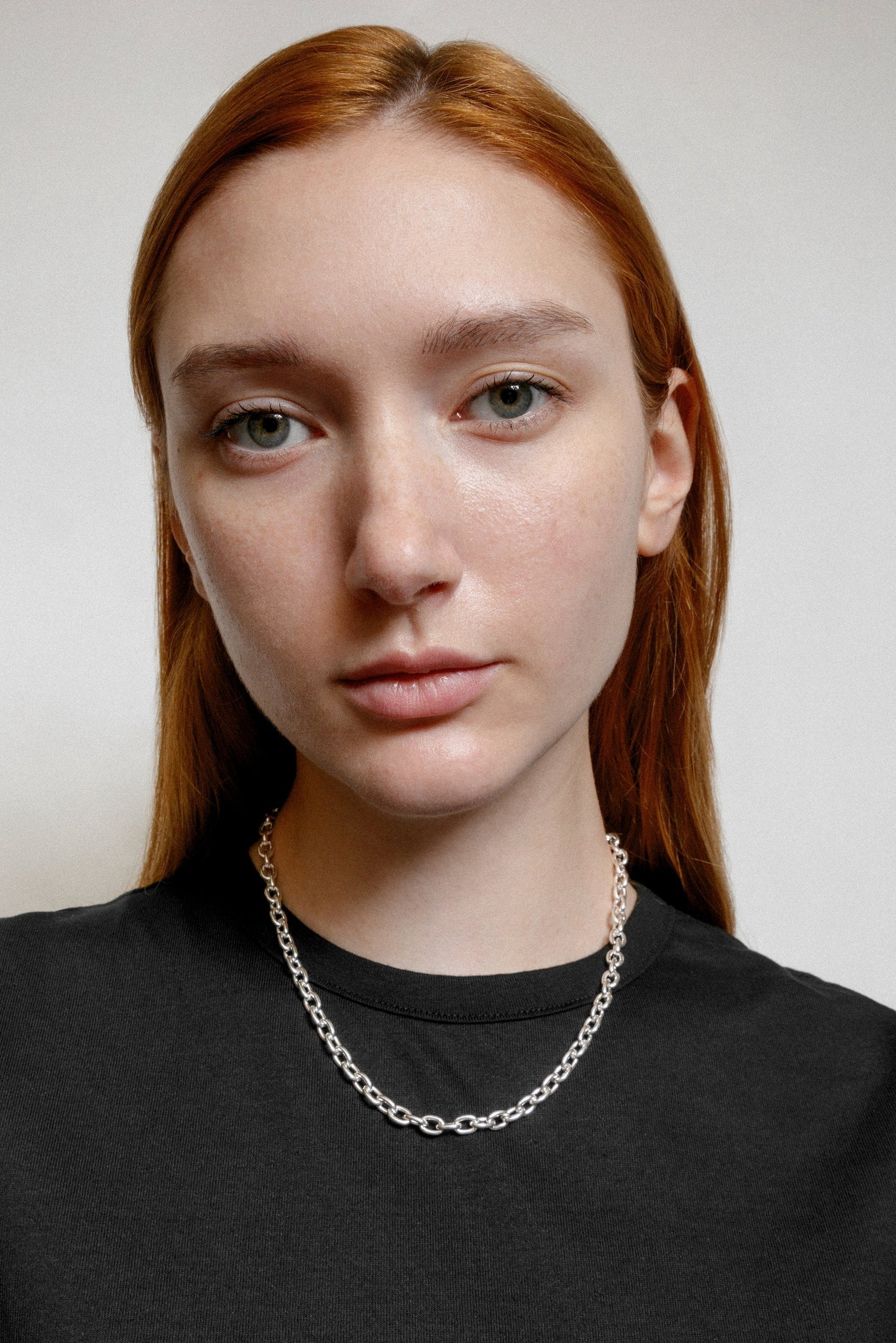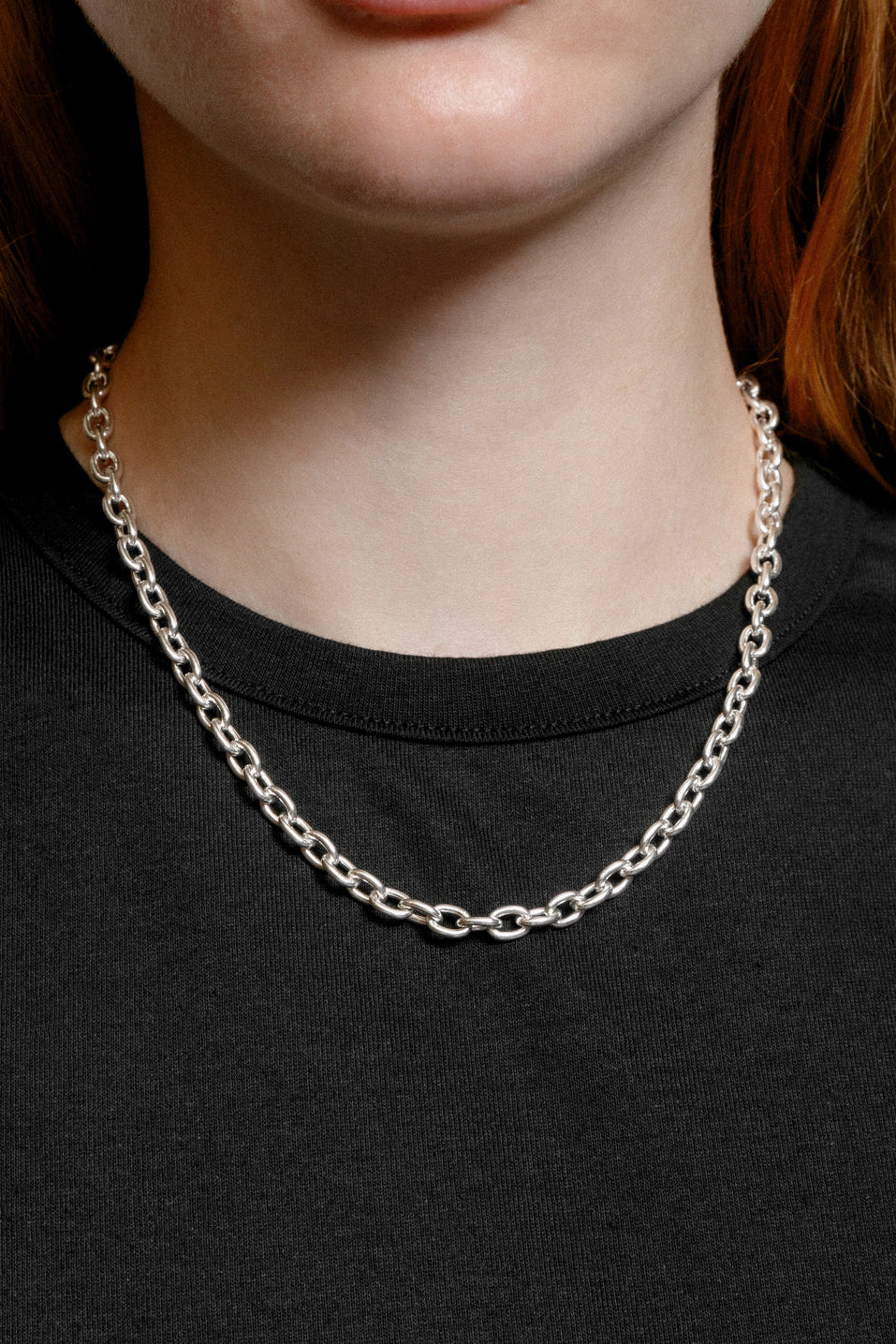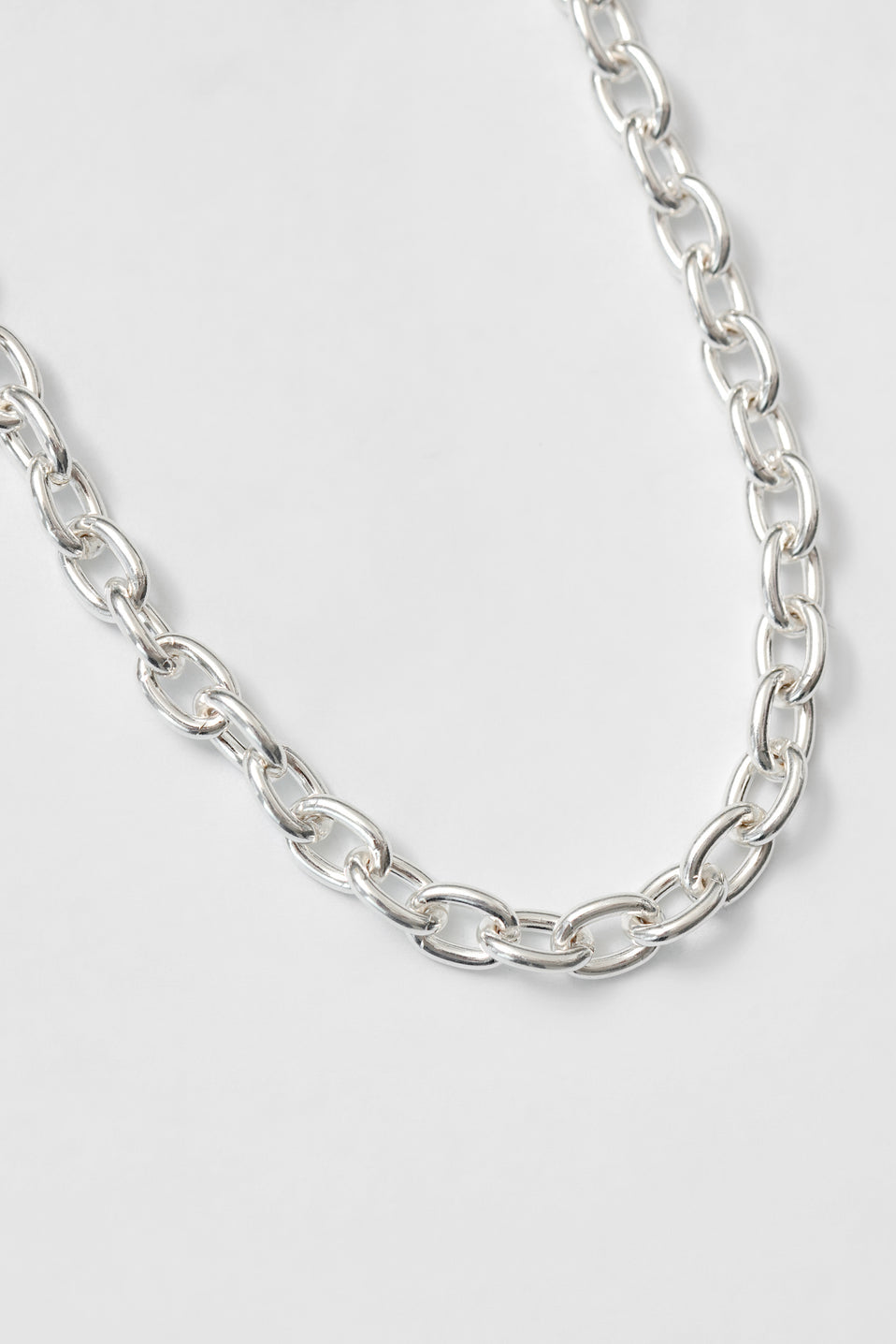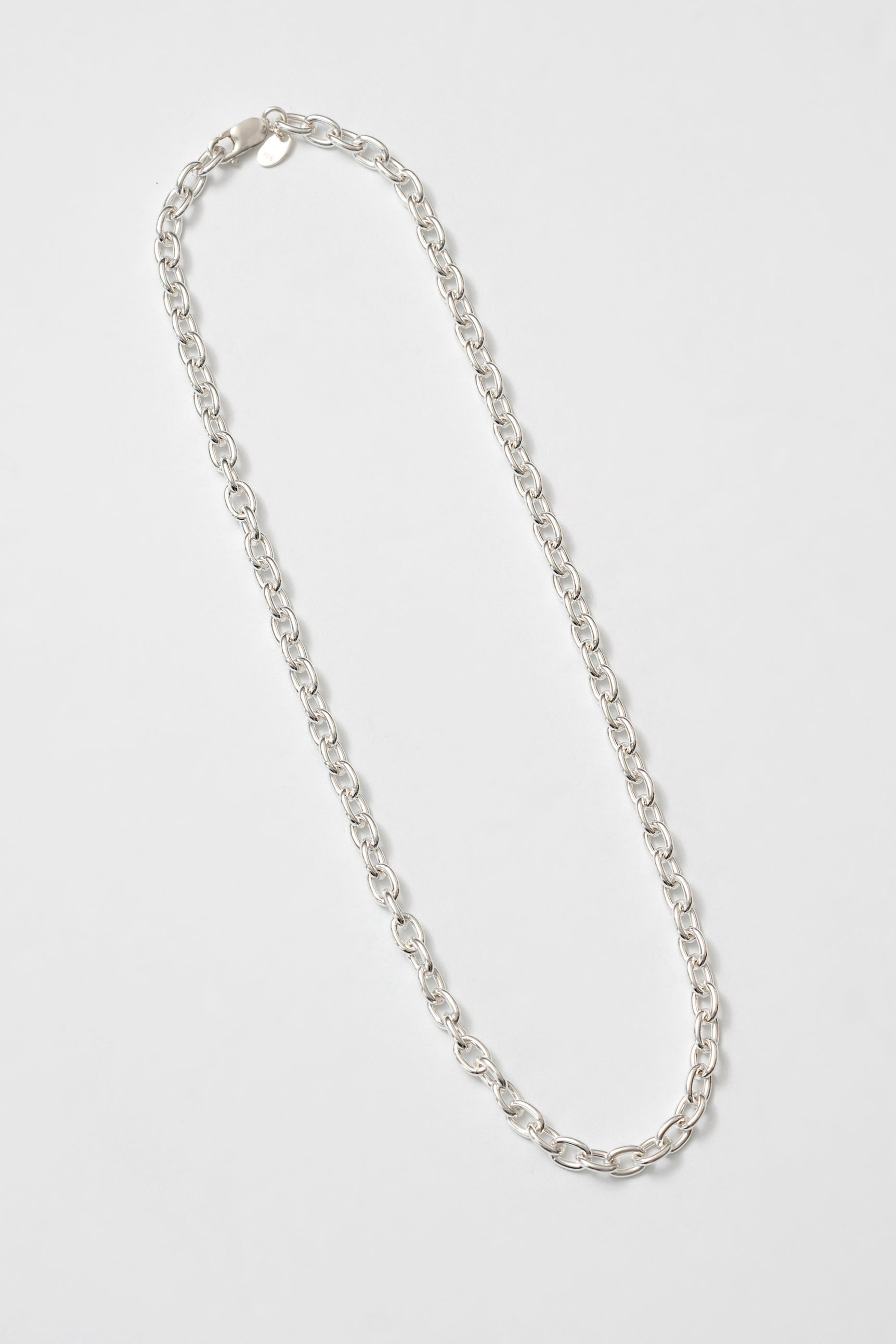 A minimalist statement necklace made from sterling silver. Measures 18" in length.