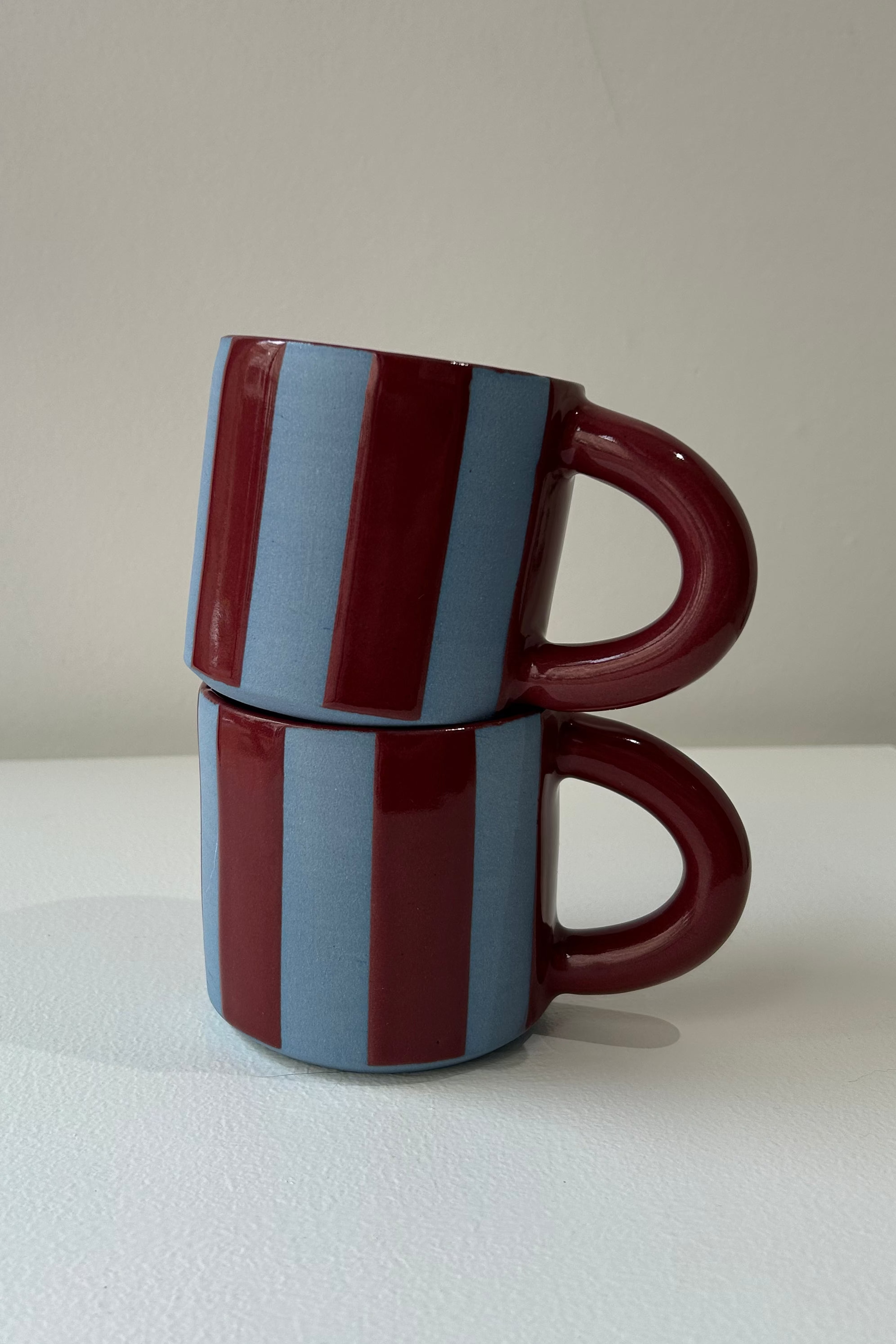 Amphora Ceramics | Stripe Mug | Cherry/Blue