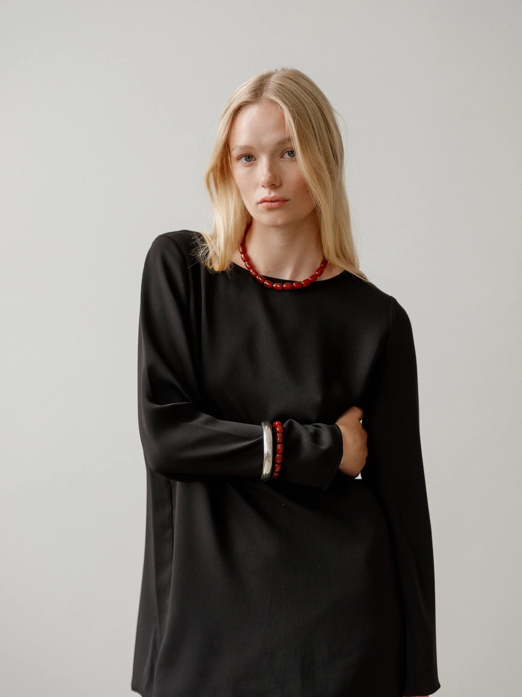 Composition | Red Agate beads, silk thread and 14k Gold Filled toggle closure