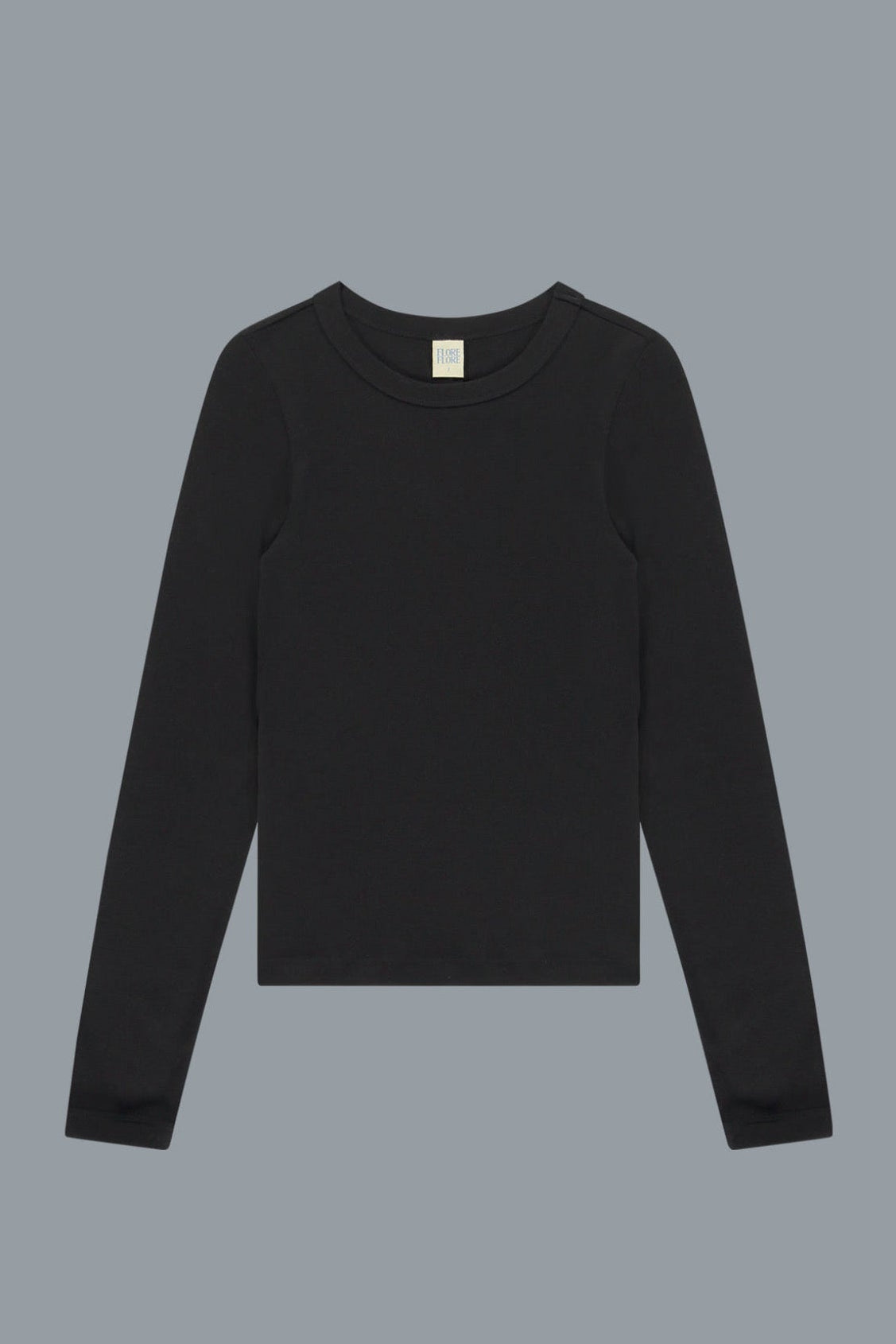 A fitted long-sleeve tee from Amsterdam-based Flore Flore, with a banded neck and cuffs. A classic style, and perfect for a summer night or winter layering. Made in a medium weight organic cotton baby rib.