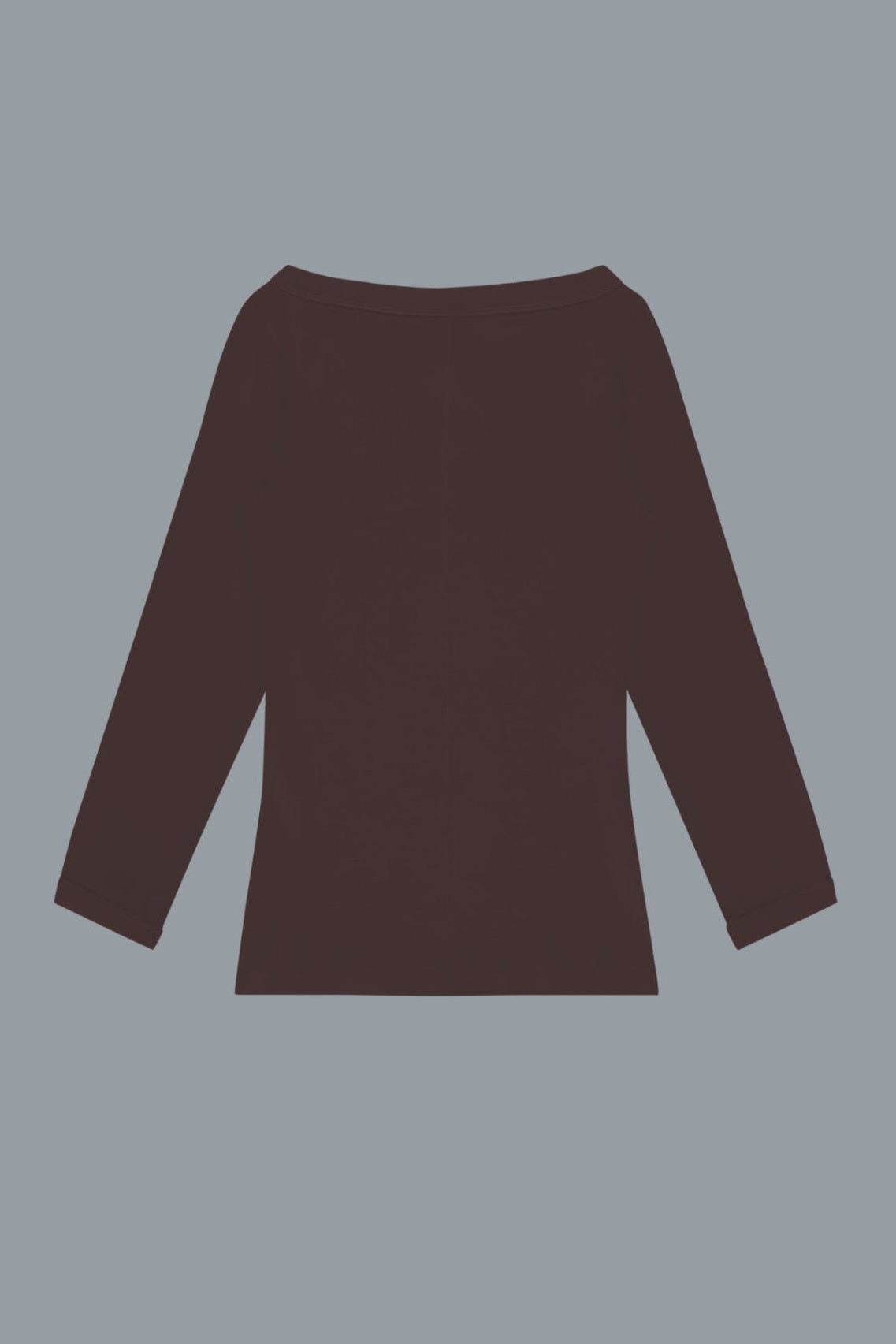 A classic boatneck tee from Amsterdam-based Flore Flore with a 3/4 sleeve with a double stitched cut-off seam on the back. Made in a medium weight organic cotton rib.