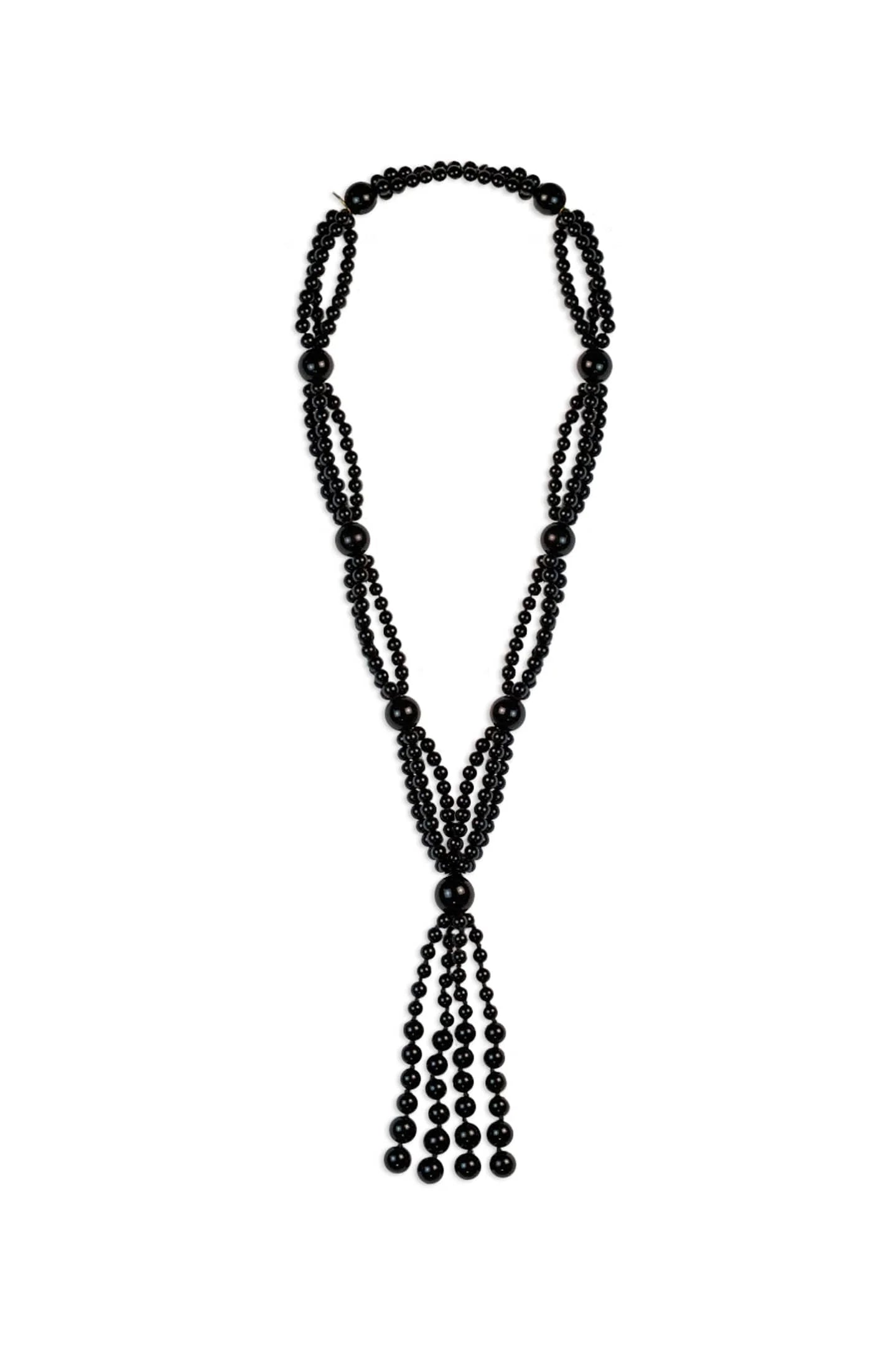 The Farol necklace by Mosquito's is made from onyx semi precious gemstone beads. Strung with a silk thread, each bead is individually knotted by hand — a traditional technique that enhances both the durability and fluidity of the piece. A sterling silver charm finished with a 3-micron 18k gold bath completes the design. Made slowly and intentionally, on average each piece spends around for hours during the crafting process before it's ready to be yours. Each necklace is unique — its subtle variations and imperfections are a testament to its artisanal, one of a kind nature.