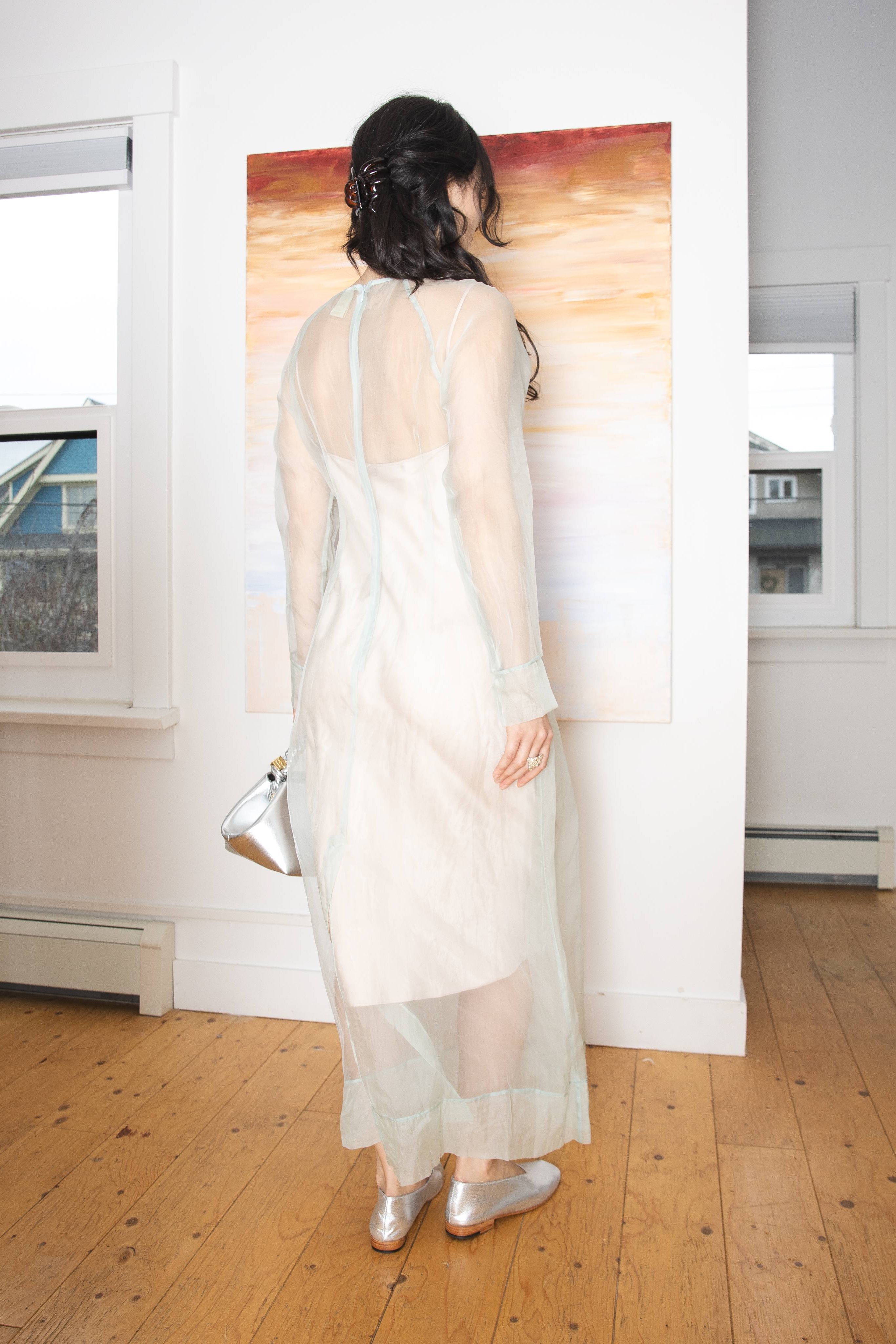 The Scenic Dress from SC103 is crafted from sheer silk organza for an ethereal, translucent effect with a slight flowing silhouette. Unlined.